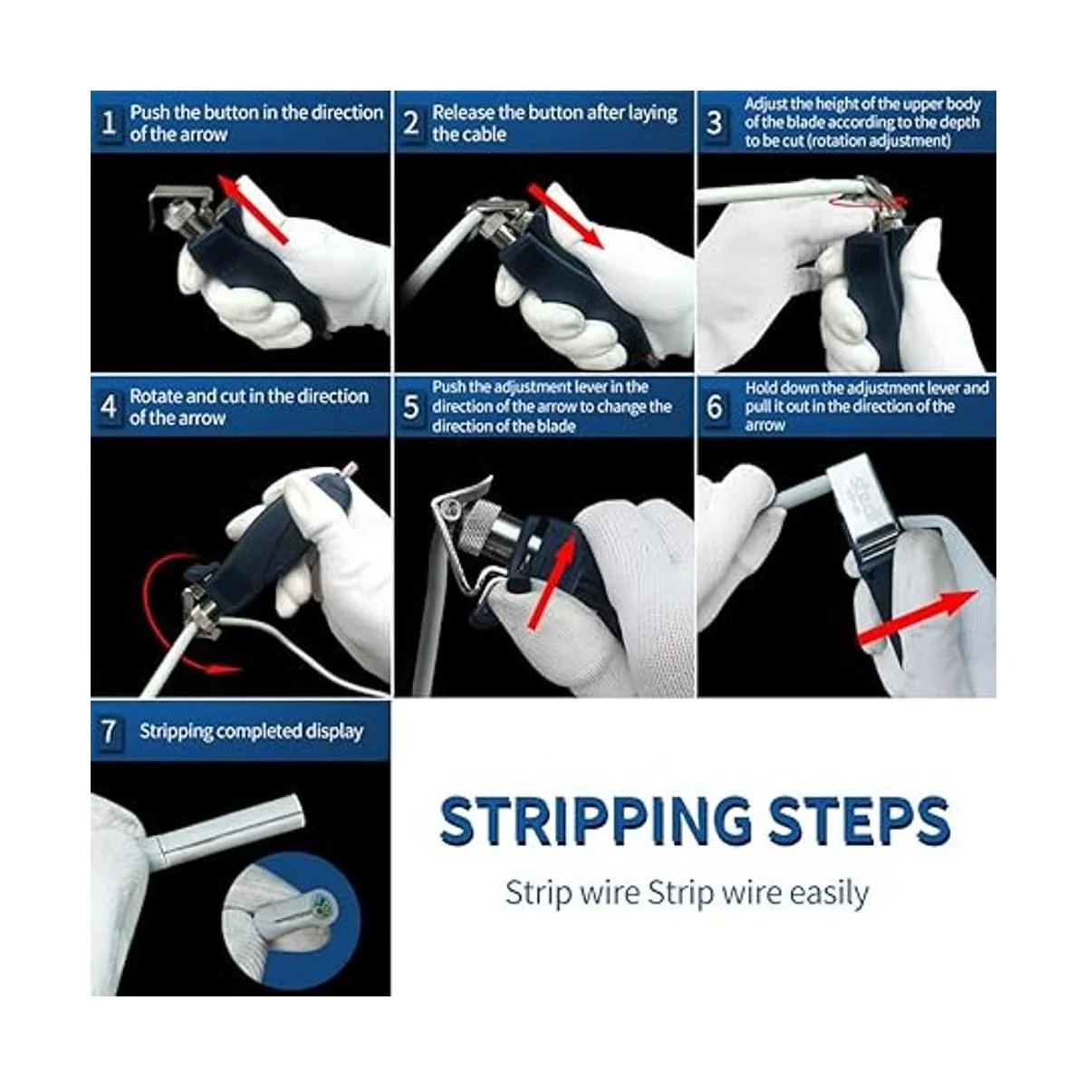 Amplia gama de usos: este dispositivo de pelado de cables puede cortar varios materiales de funda, fácil de operar y adecuado para pelar cables de diferentes tamaños y diámetros. Adecuado para cable de 0.181 pulgadas.