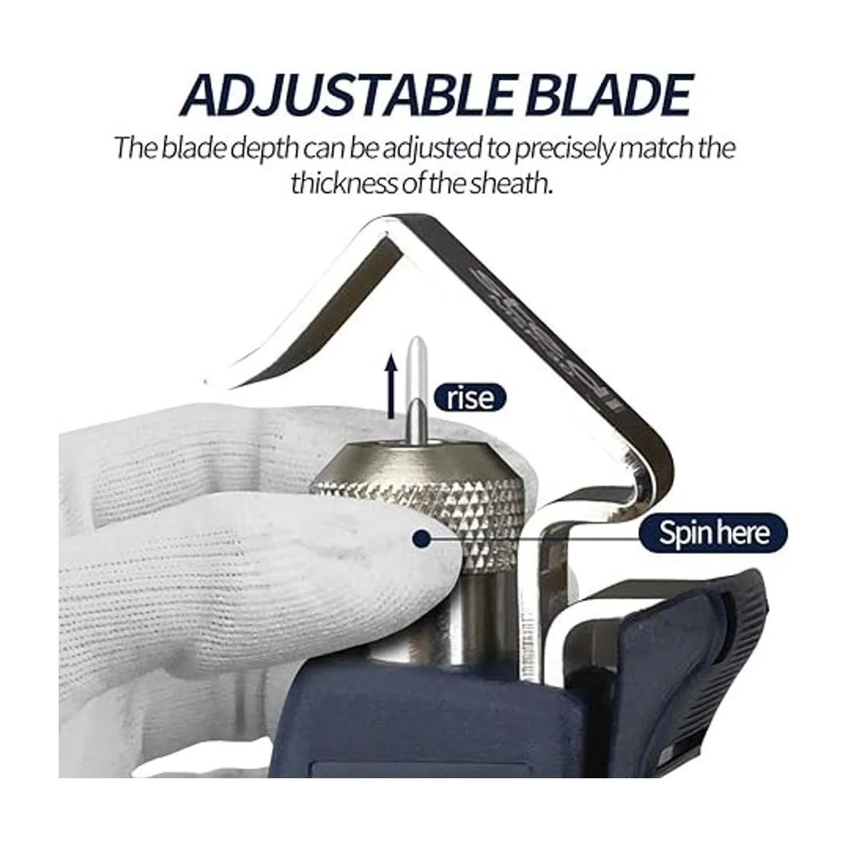 Hoja ajustable: la profundidad de la hoja se puede ajustar para que coincida con precisión con el grosor de la funda.