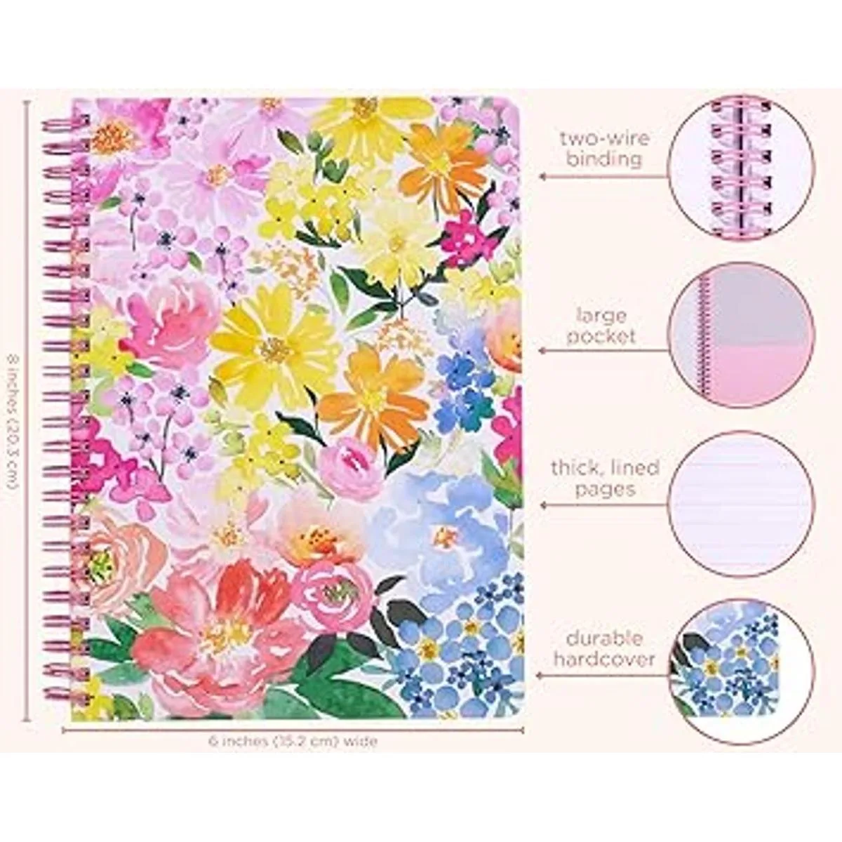 Steel Mill Co Bonito cuaderno floral en espiral, diario de 8.25 x 6.25 pulgadas con tapa dura duradera y 160 páginas forradas, jardín de verano