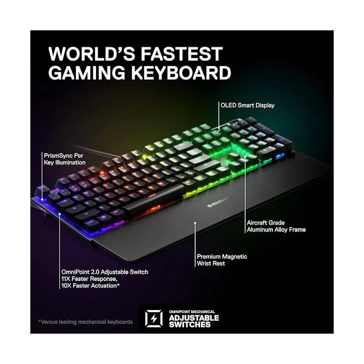 SteelSeries Apex Pro Teclado mecánico para videojuegos Interruptores de actuación ajustables Teclado mecánico más rápido del mundo Pantalla inteligente OLED Retroiluminación RGB