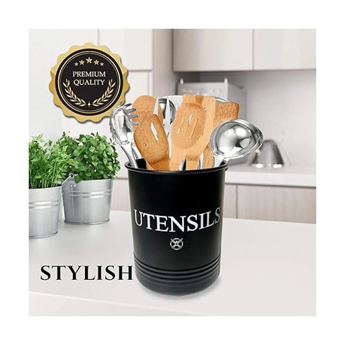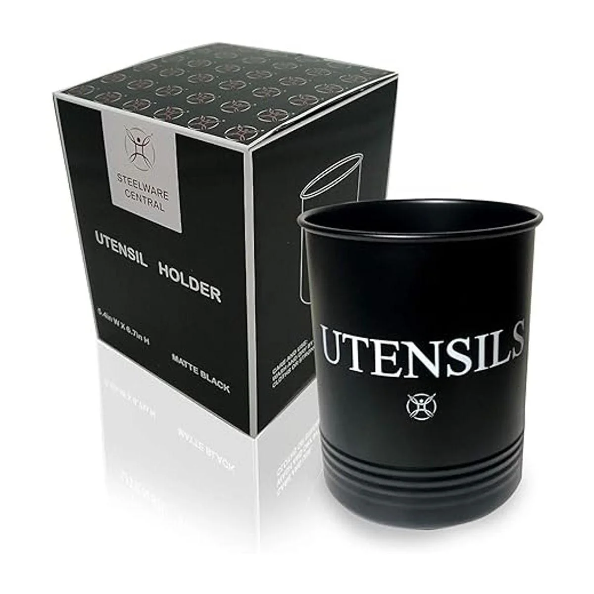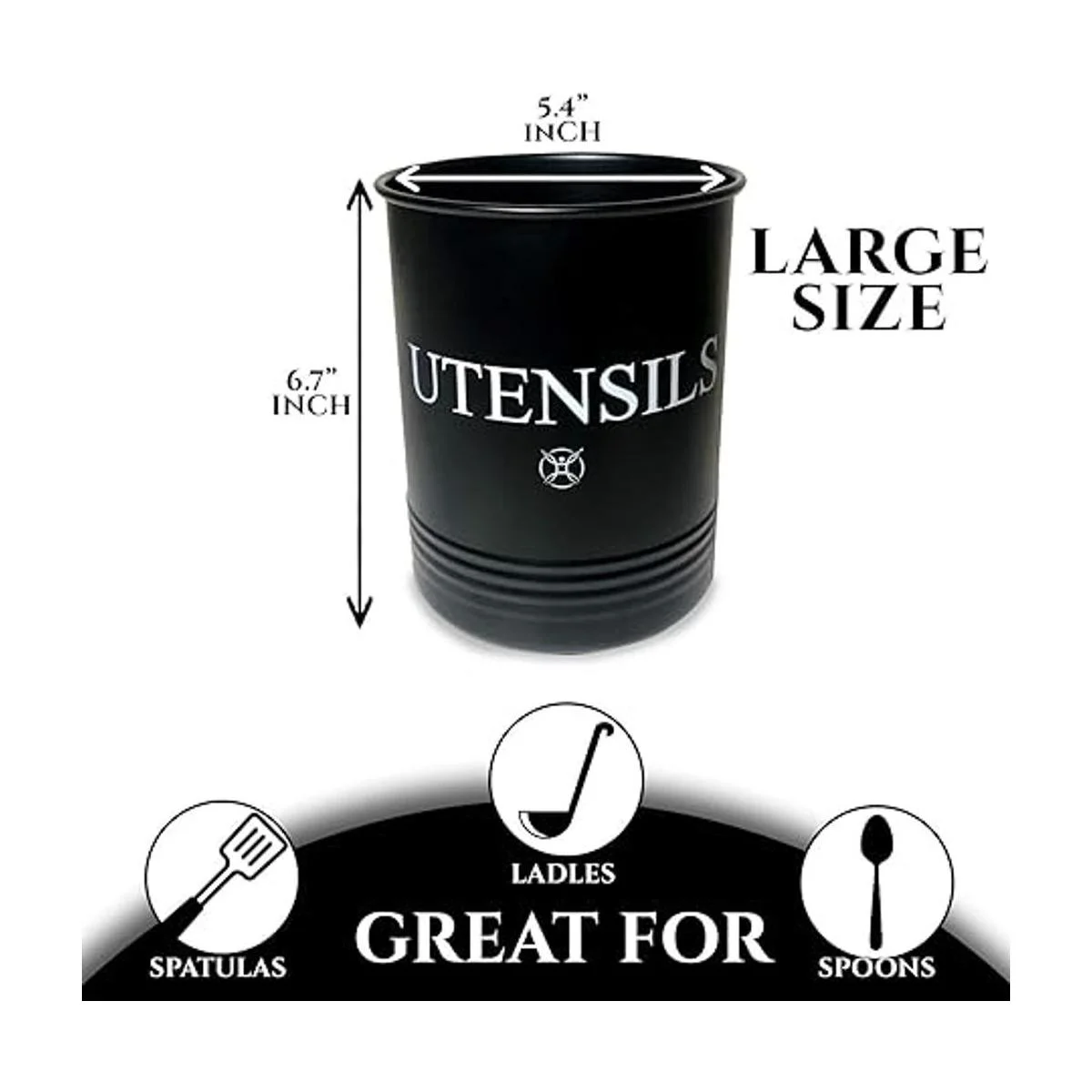 Negro mate grande: perfecto para utensilios de cocina de acero inoxidable, madera, metal, silicona y herramientas de cocina.