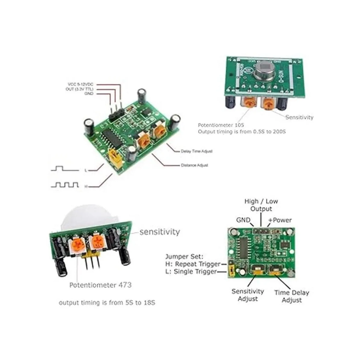 Stemedu HCSR501 PIR Módulo de detección de movimiento corporal infrarrojo IR para Arduino Raspberry Pi paquete de 5 unidades