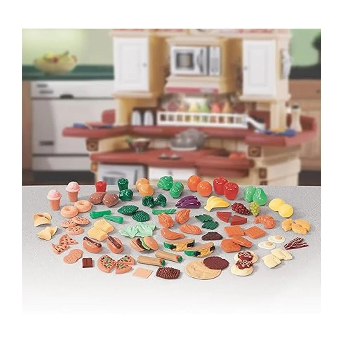 Incluye una variedad de alimentos, incluyendo frutas, verduras, carnes, panes, pasteles, sándwiches, desayuno, aperitivos, postres y mucho más