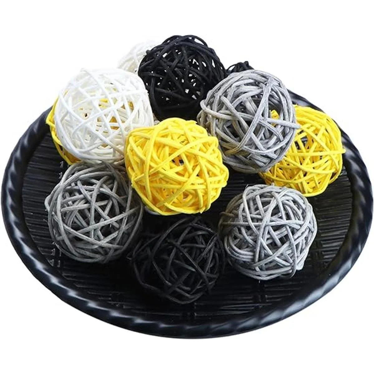 Estilo natural: estos juegos de bolas de ratán están compuestos de bolas de ratán negro, gris, amarillo y blanco. Los colores clásicos y los materiales naturales pueden añadir una sensación natural a tu casa, lo que los hace ideales para la decoración del hogar.