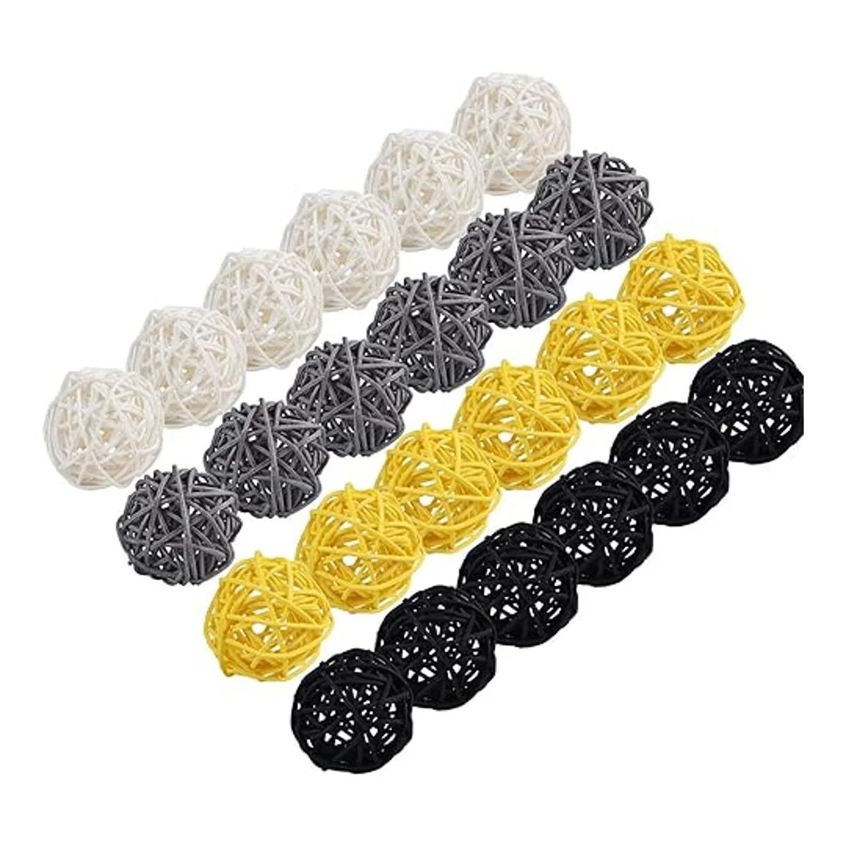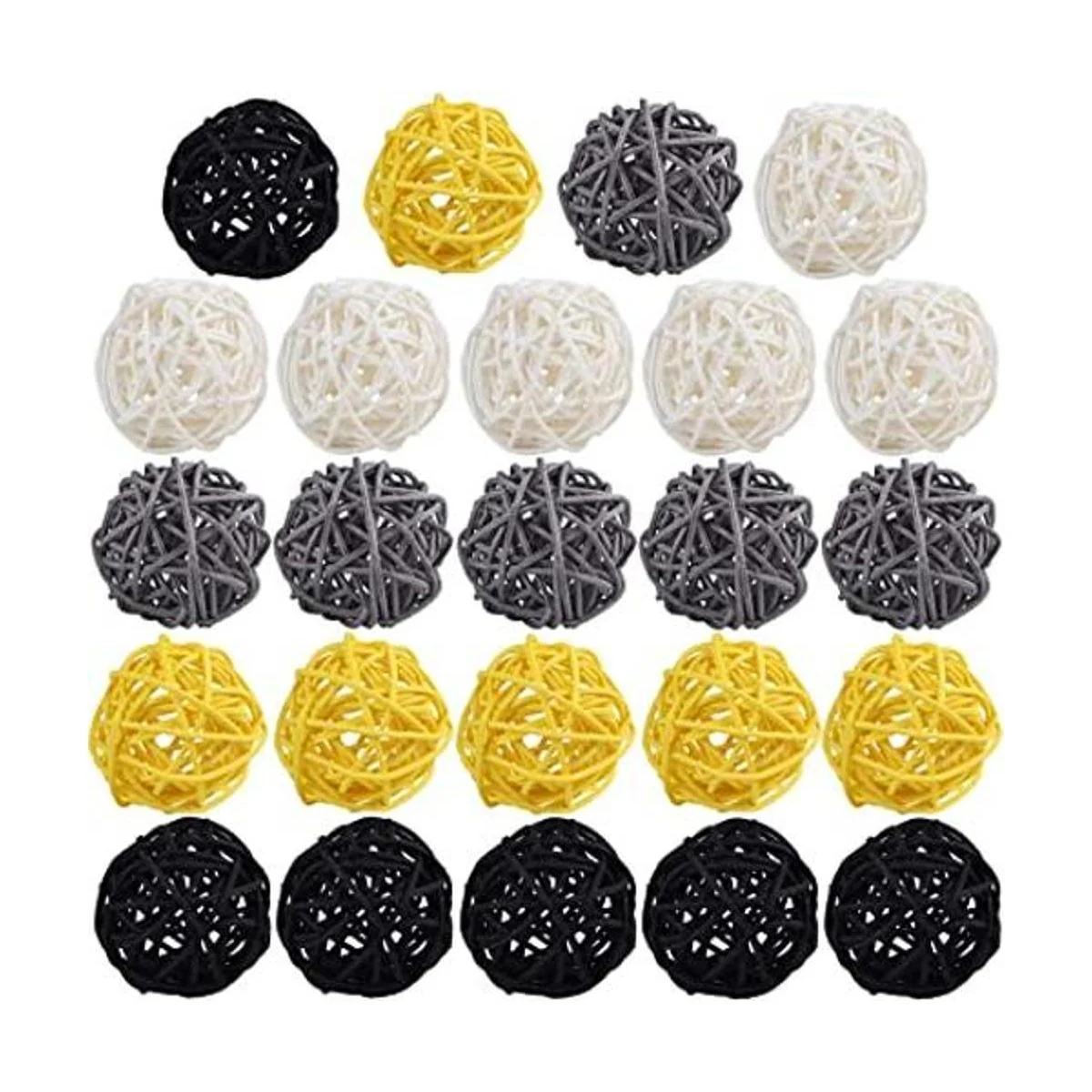 STMK 24 bolas de ratán de 2 pulgadas, bolas de mimbre decorativas para decoración del hogar, decoración de cuenco de jarrón, adorno para habitación de bebé, decoración de mesa de boda negro, gris, amarillo, blanco