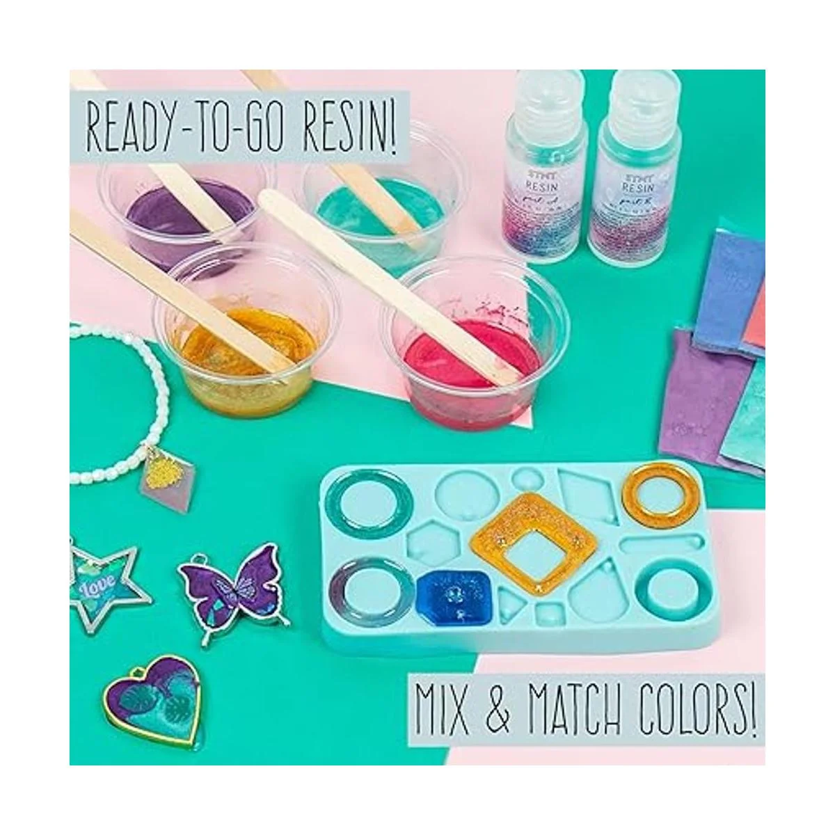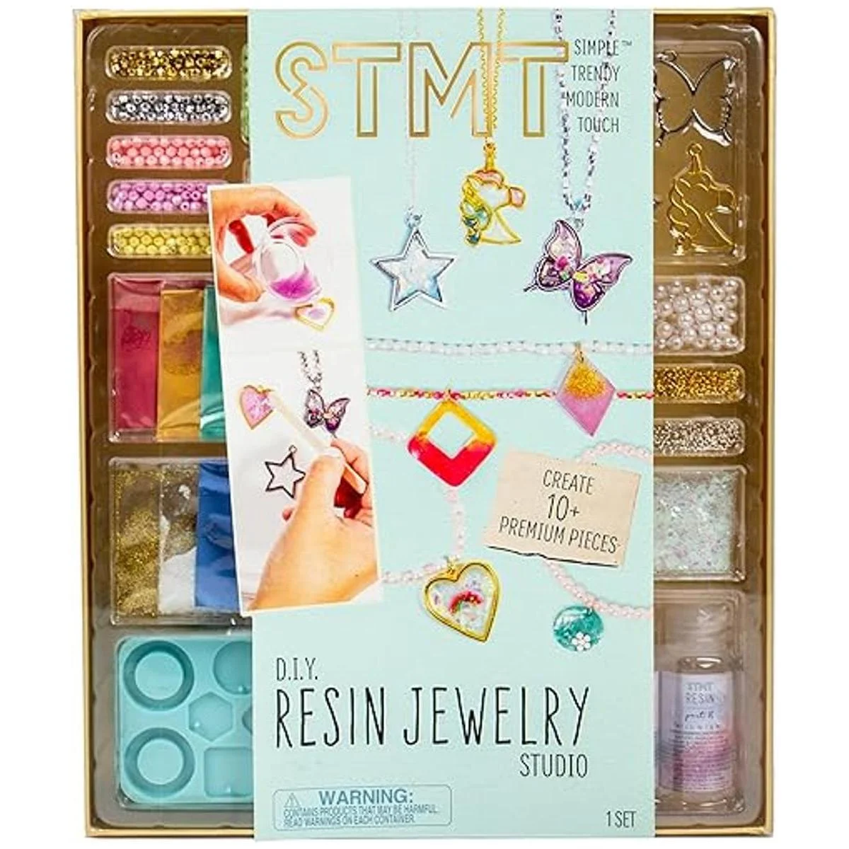 STMT D.I.Y. Resina Jewelry Studio, kit de fabricación de joyas de resina todo en uno con moldes de joyería de resina, divertido kit de joyería de bricolaje para hacer tus propios collares, pulseras y más, gran regalo para adolescentes y niñas mayores de 14 años