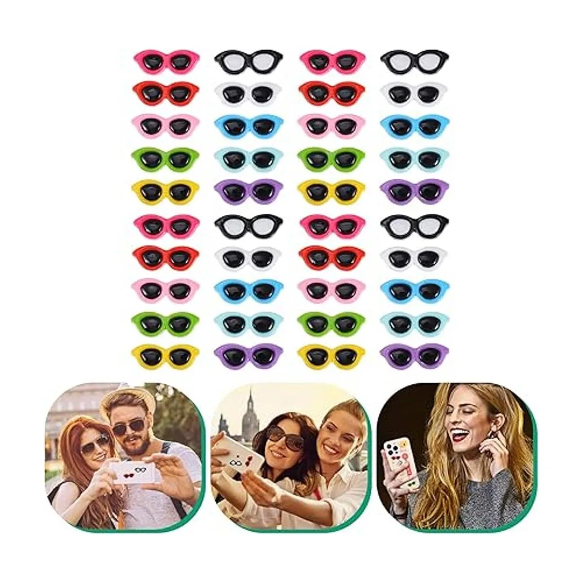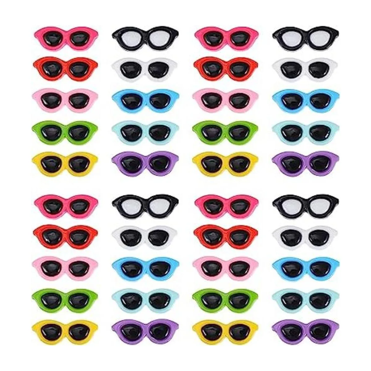 STOBOK 40 piezas de mini gafas de sol para manualidades, accesorios de funda de teléfono de resina colorida, dije exquisito aceite de goteo, decoración de gafas de sol para álbumes de recortes, manualidades, clip para el cabello
