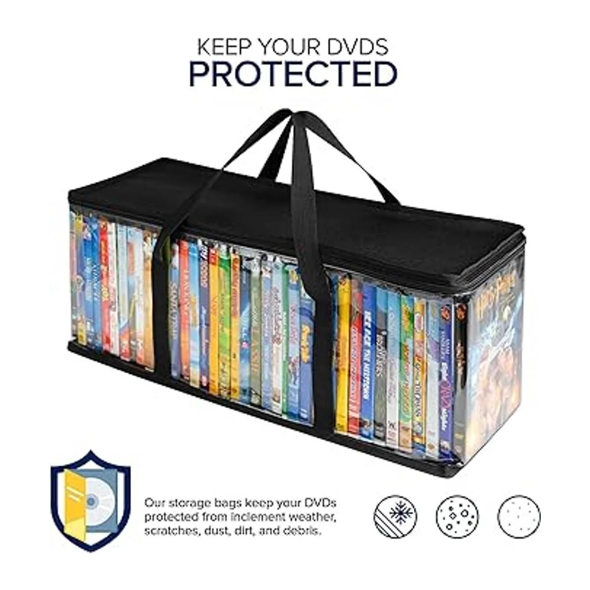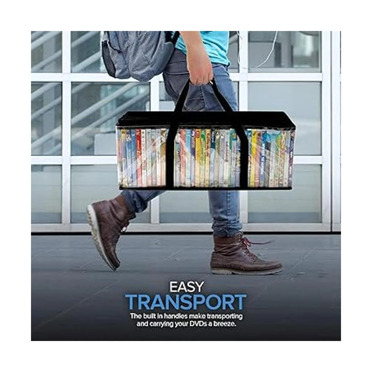 Asas de transporte: nuestros contenedores de almacenamiento están fabricados con asas integradas de doble costura para cuando necesites llevar y transportar tus DVD. La apertura superior con cremallera proporciona un fácil acceso a todos tus artículos.