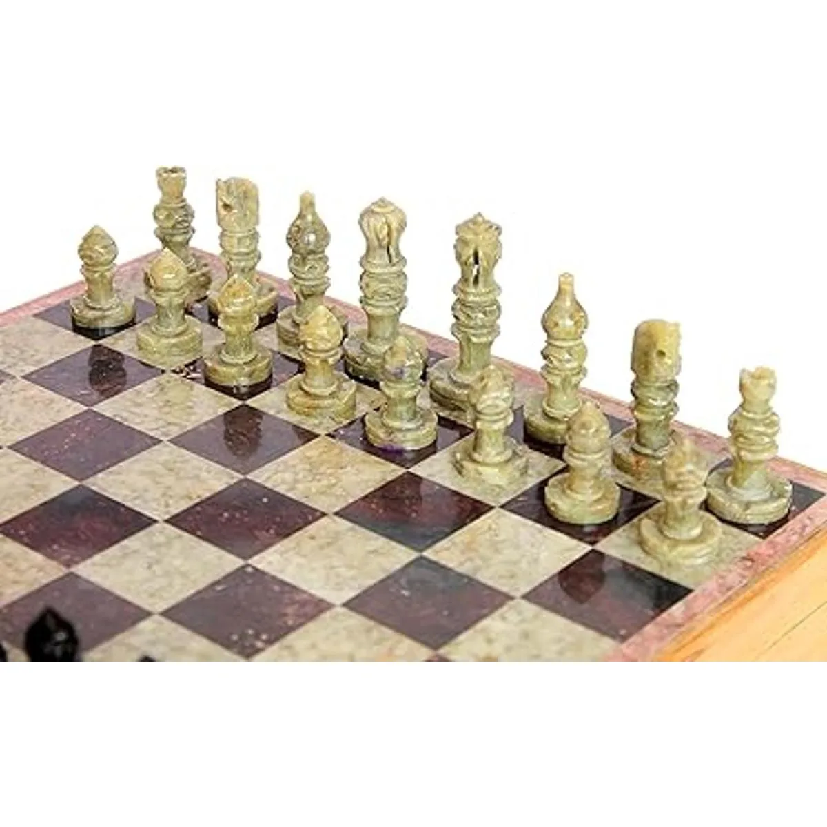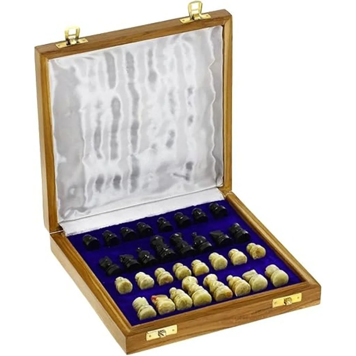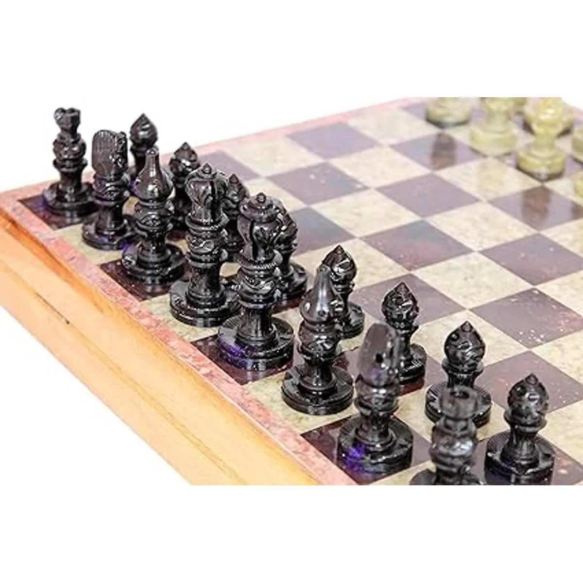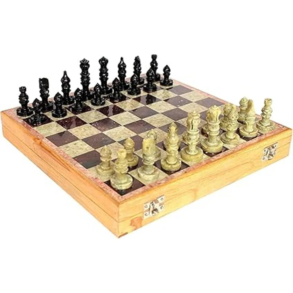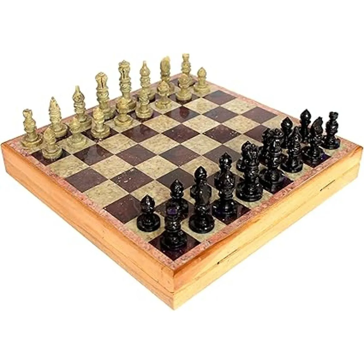 StonKraft Tabla de ajedrez de 10.0 x 10.0 in con base de madera y incrustaciones de piedra y juego de piezas de piedra