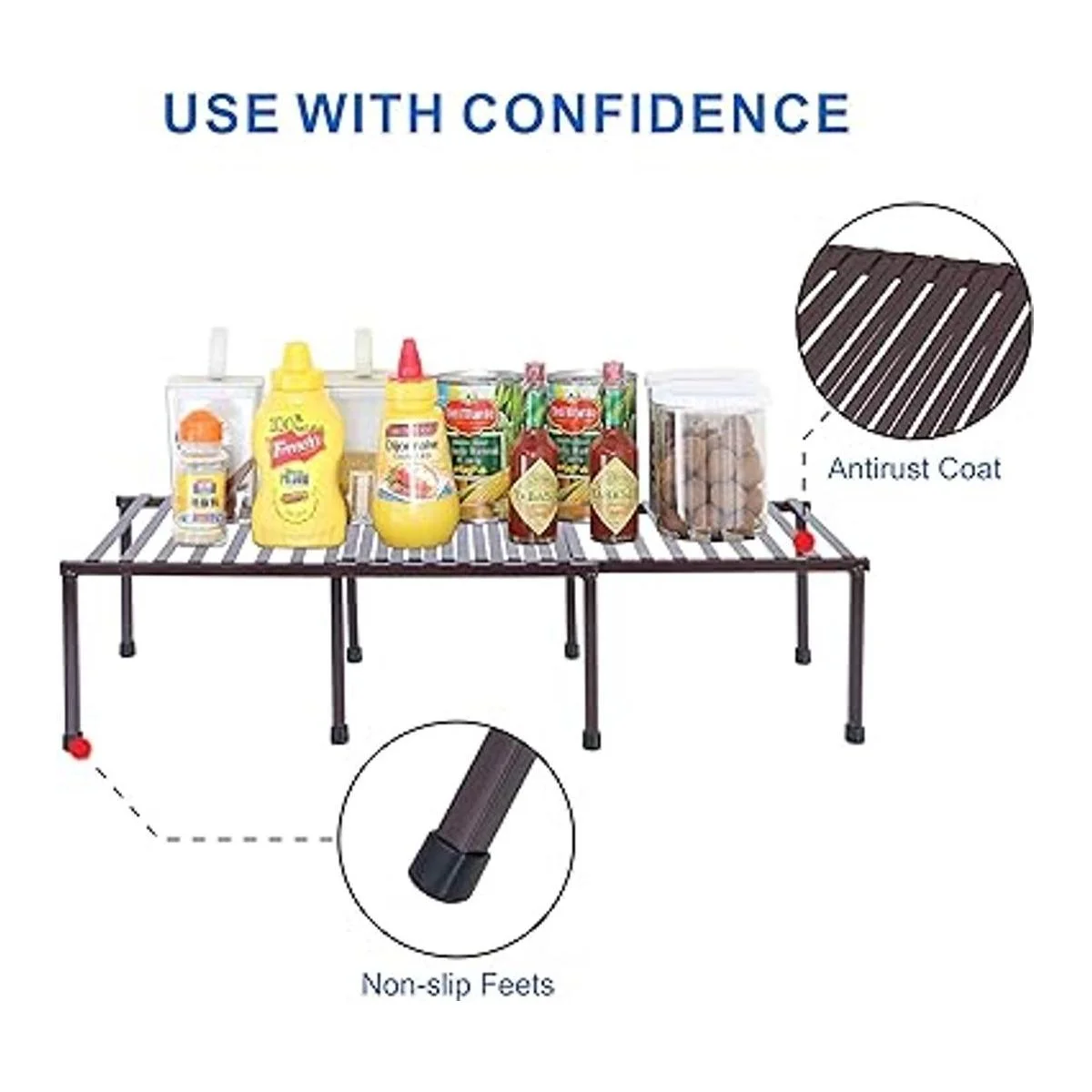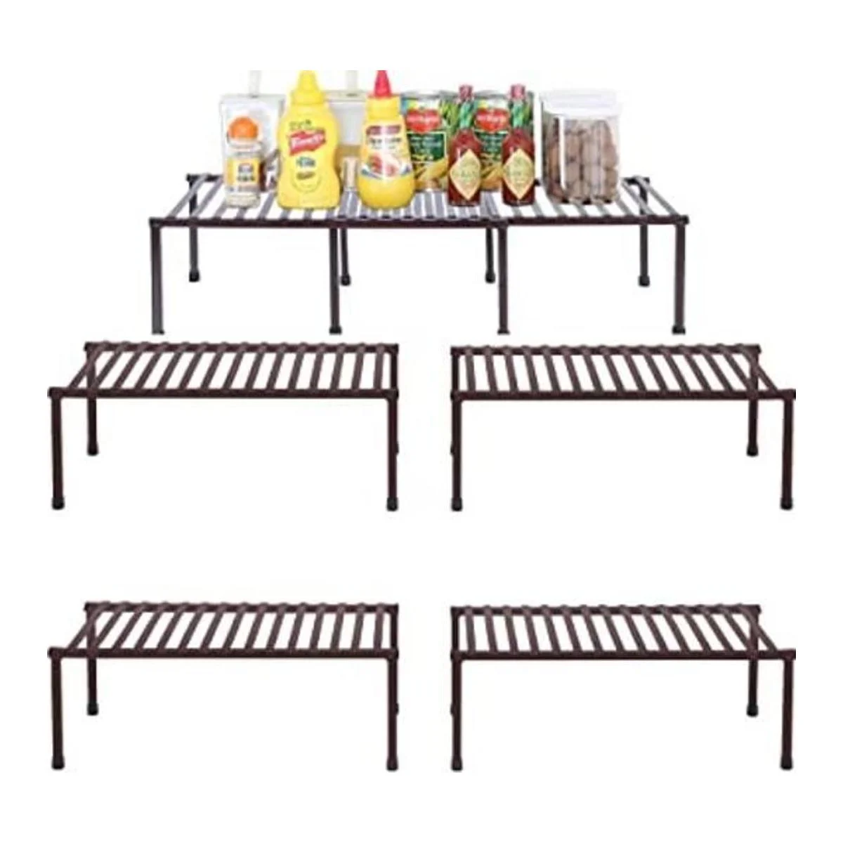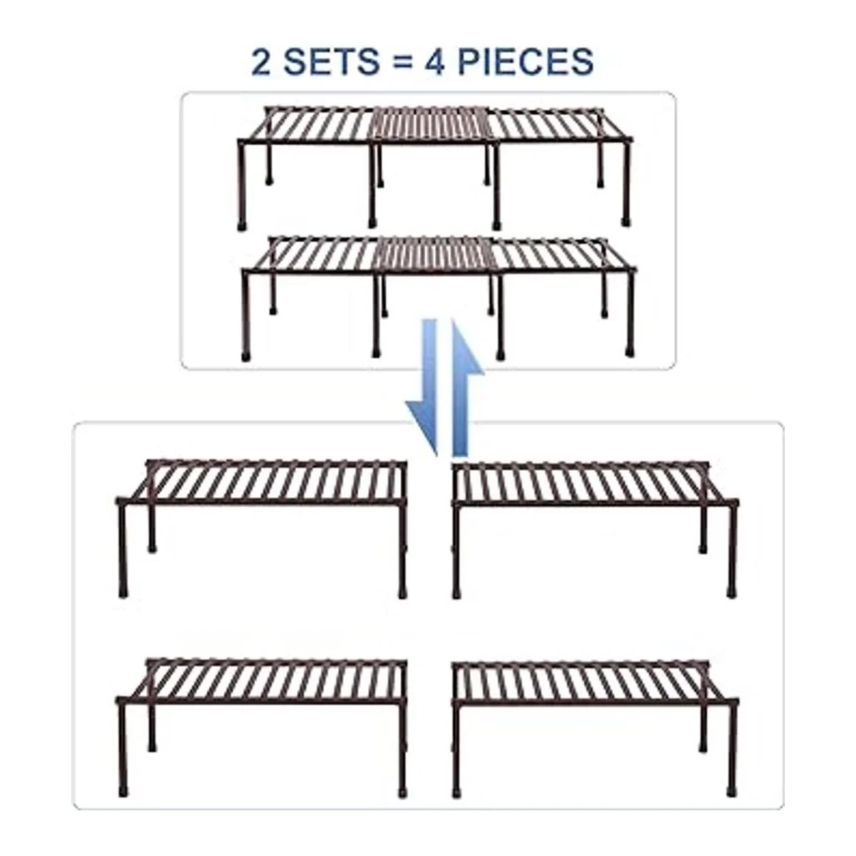 STORAGE MANIAC Juego de 4 estantes de cocina, estante de almacenamiento de cocina expandible, organizador de estantes de cocina, estante ajustable para panaderos de cocina, estante de organización de cocina para gabinete, baño, bronce