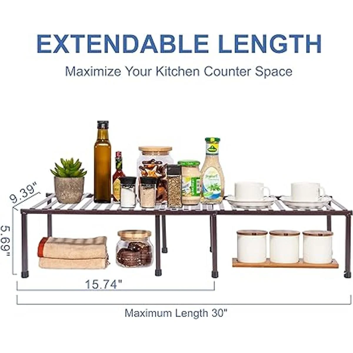 Extensible en longitud: horizontal expandible de 15.74 a 30 pulgadas, capaz de adaptarse a tus diferentes necesidades; el diseño único de estante superpuesto añade apoyo adicional y proporciona una base firme