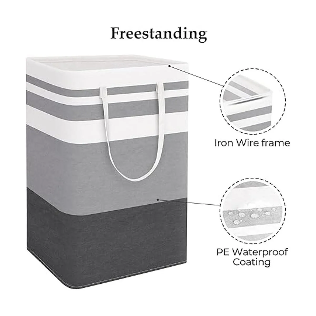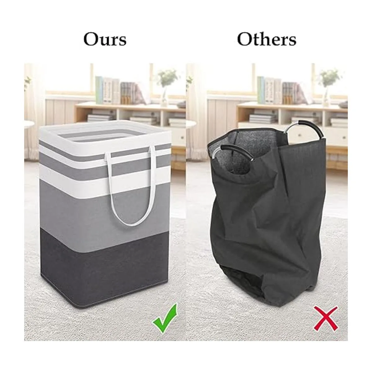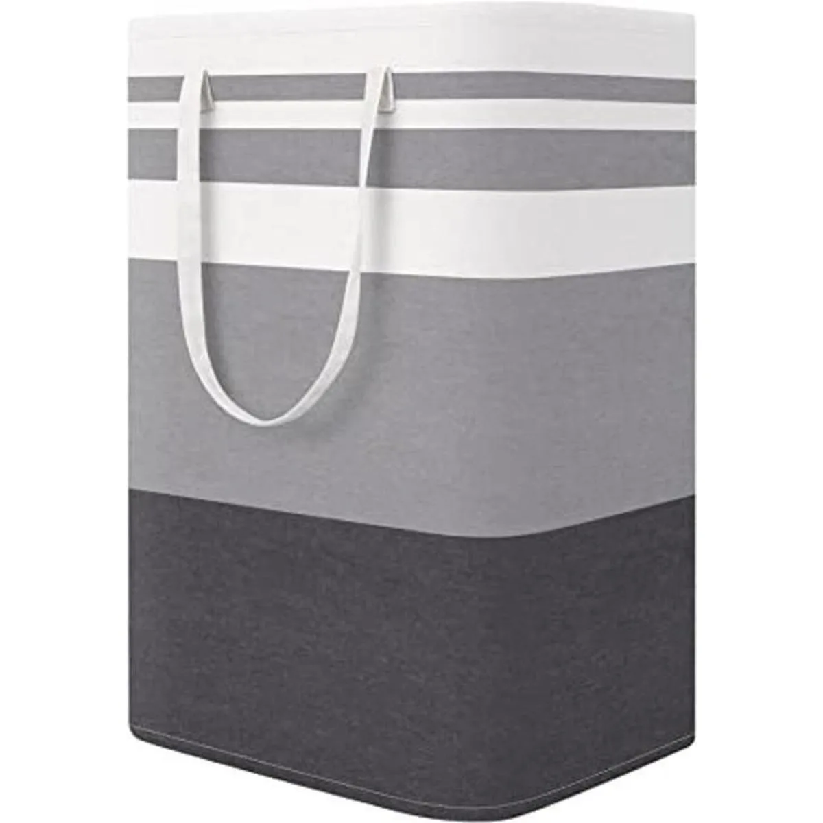 Gran capacidad: tamaño de la cesta de lavandería 15.7 x 12.6 x 23.6 pulgadas/40 cm x 32 cm x 60 cm largo x ancho x alto con una gran capacidad de 75 L. Esta cesta es adecuada para guardar ropa, toallas, juguetes de peluche, calcetines, suéteres, etc., y es lo suficientemente grande como para contener la ropa sucia de toda la familia.