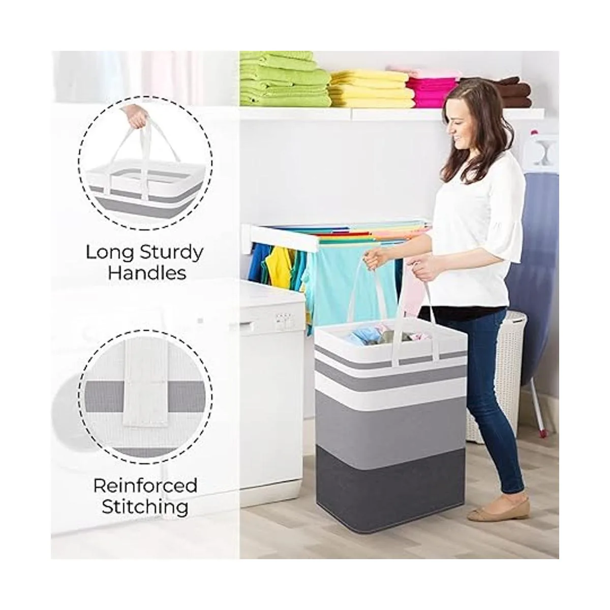 StorageRight Canasta de lavandería plegable grande con asas de fácil transporte, cestas de ropa independientes para lavandería, habitación, dormitorio, ropa, toallas, juguetes, 75 litros, gris degradado