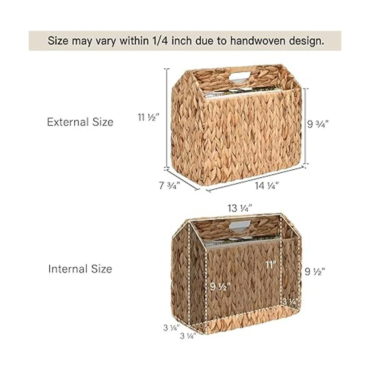 StorageWorks Cesta de revistas dividida tejida a mano, revistero de ratán, revistero de mimbre natural para baño, oficina, jacinto de agua, 14 de largo x 7 de ancho x 11 de alto