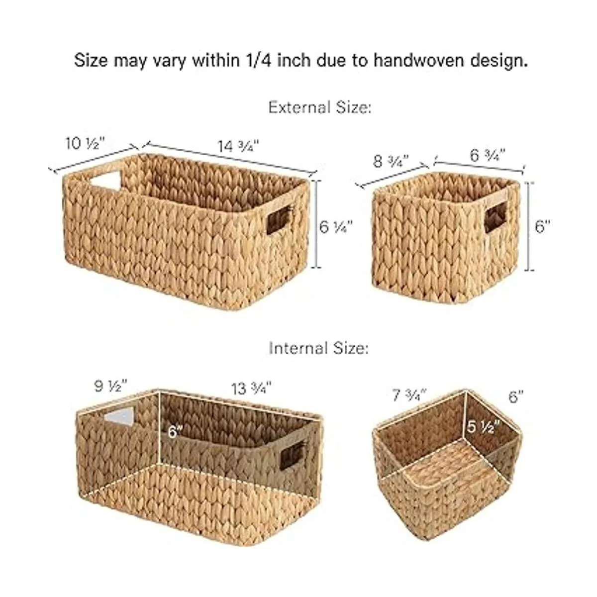 StorageWorks Cestas de almacenamiento tejidas a mano, canastas de mimbre de jacinto de agua para organizar, juego de 3 1 unidad, grande, 2 piezas medianas, 14 x 10 x 6 pulgadas