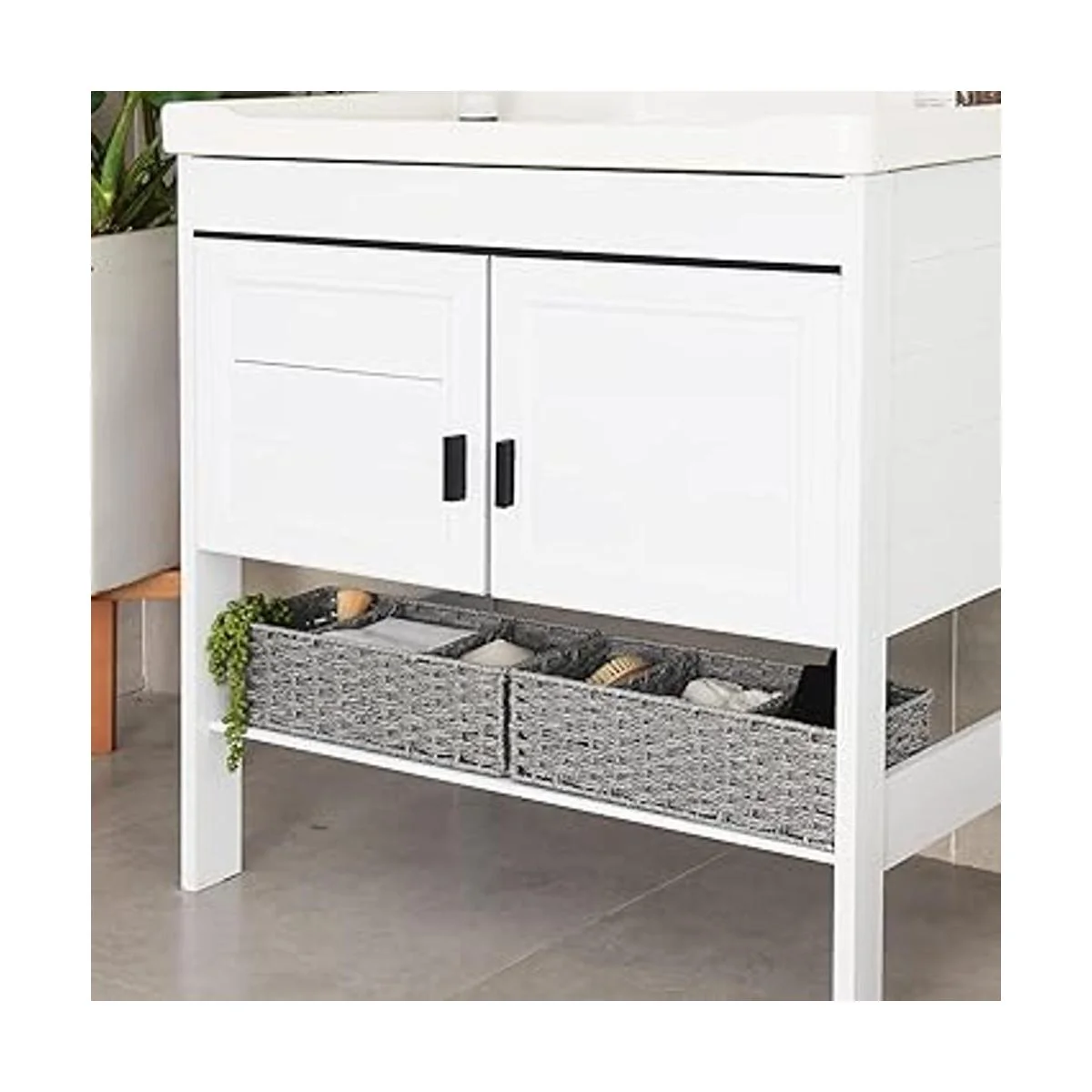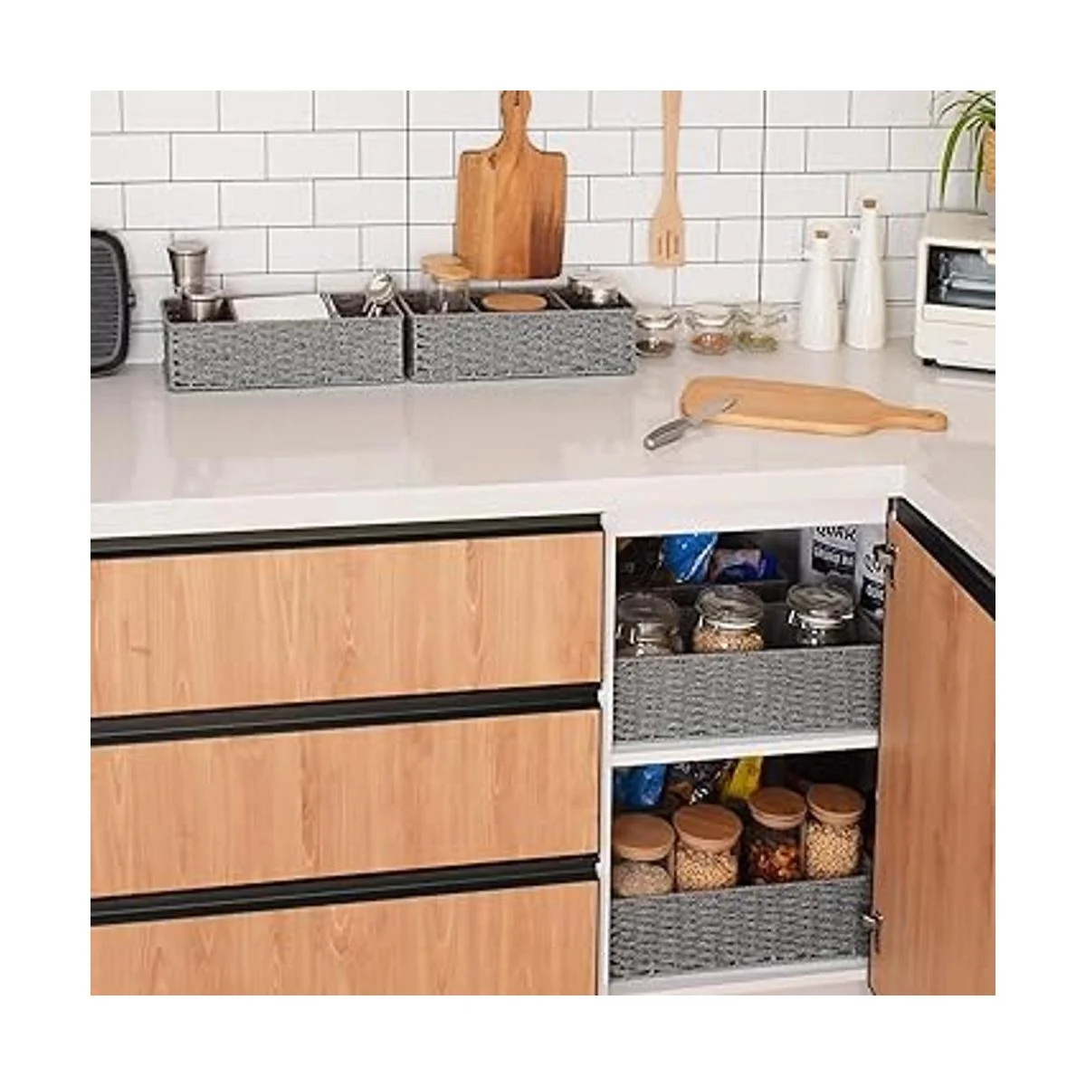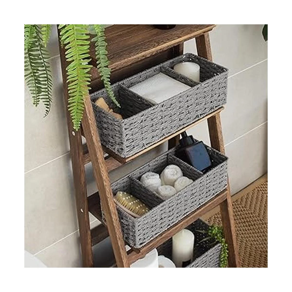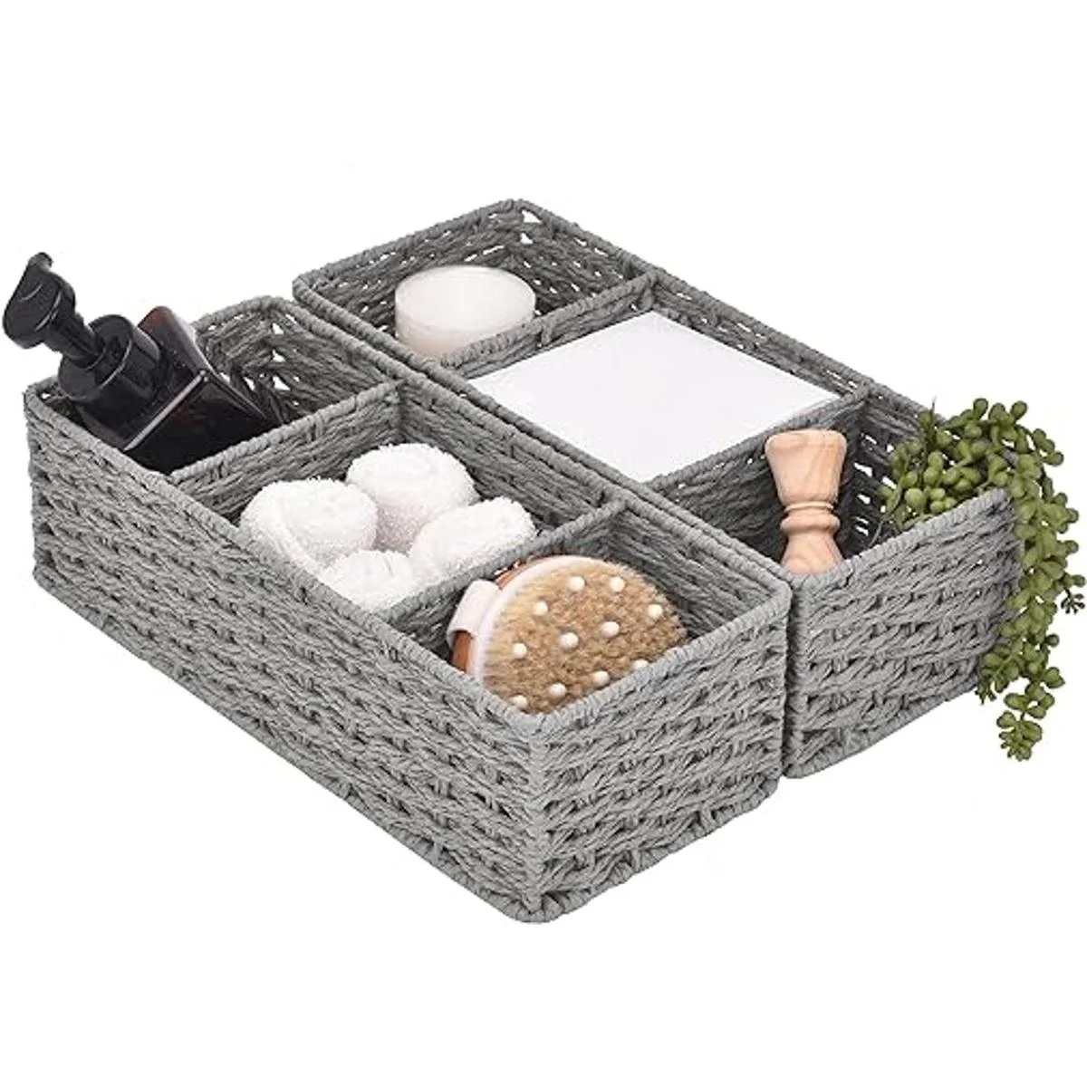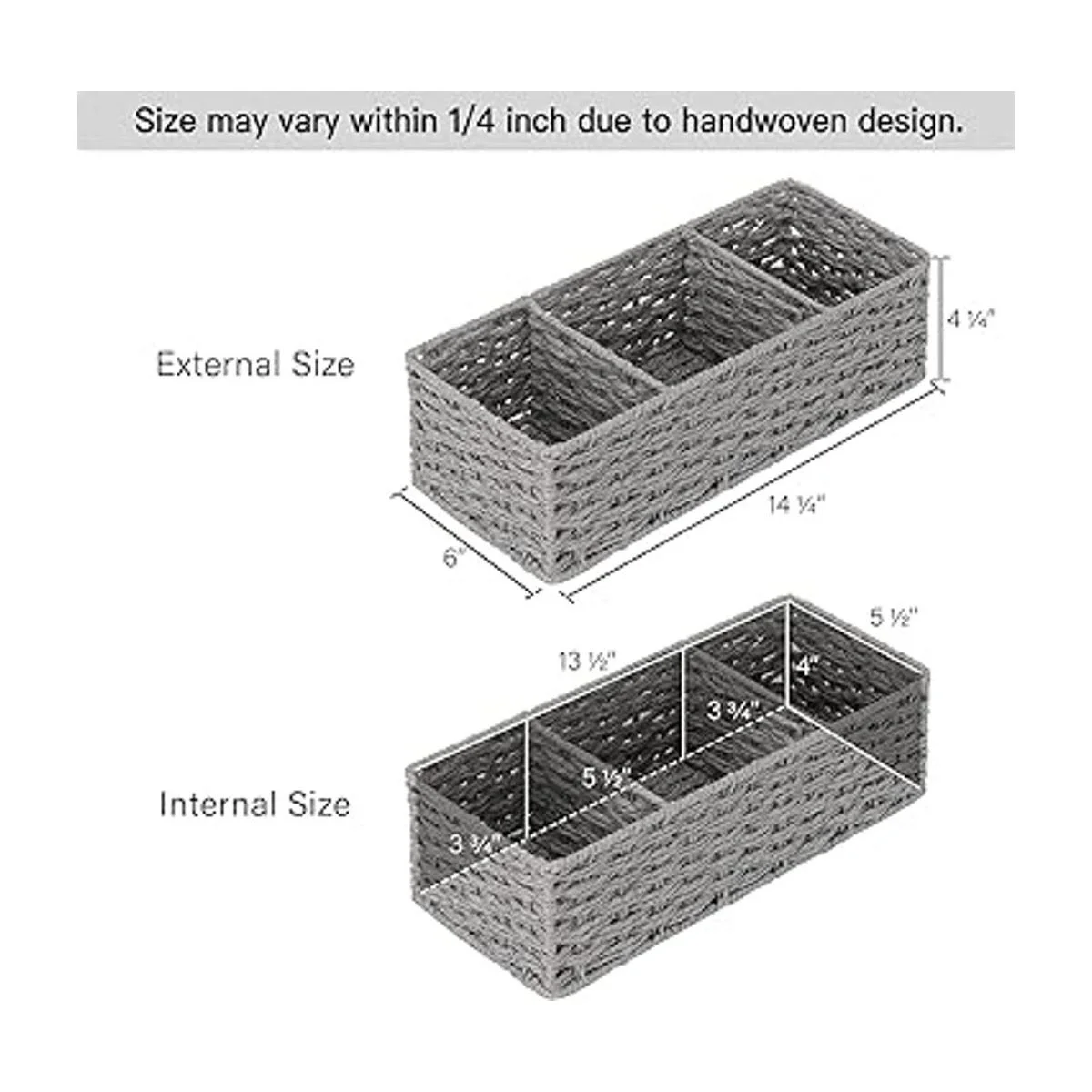 StorageWorks Cestas de mimbre de 3 secciones para estantes, cestas de almacenamiento de cuerda de papel redondas tejidas a mano, gris, 14 de largo x 6 pulgadas de ancho x 4 de alto, paquete de 2