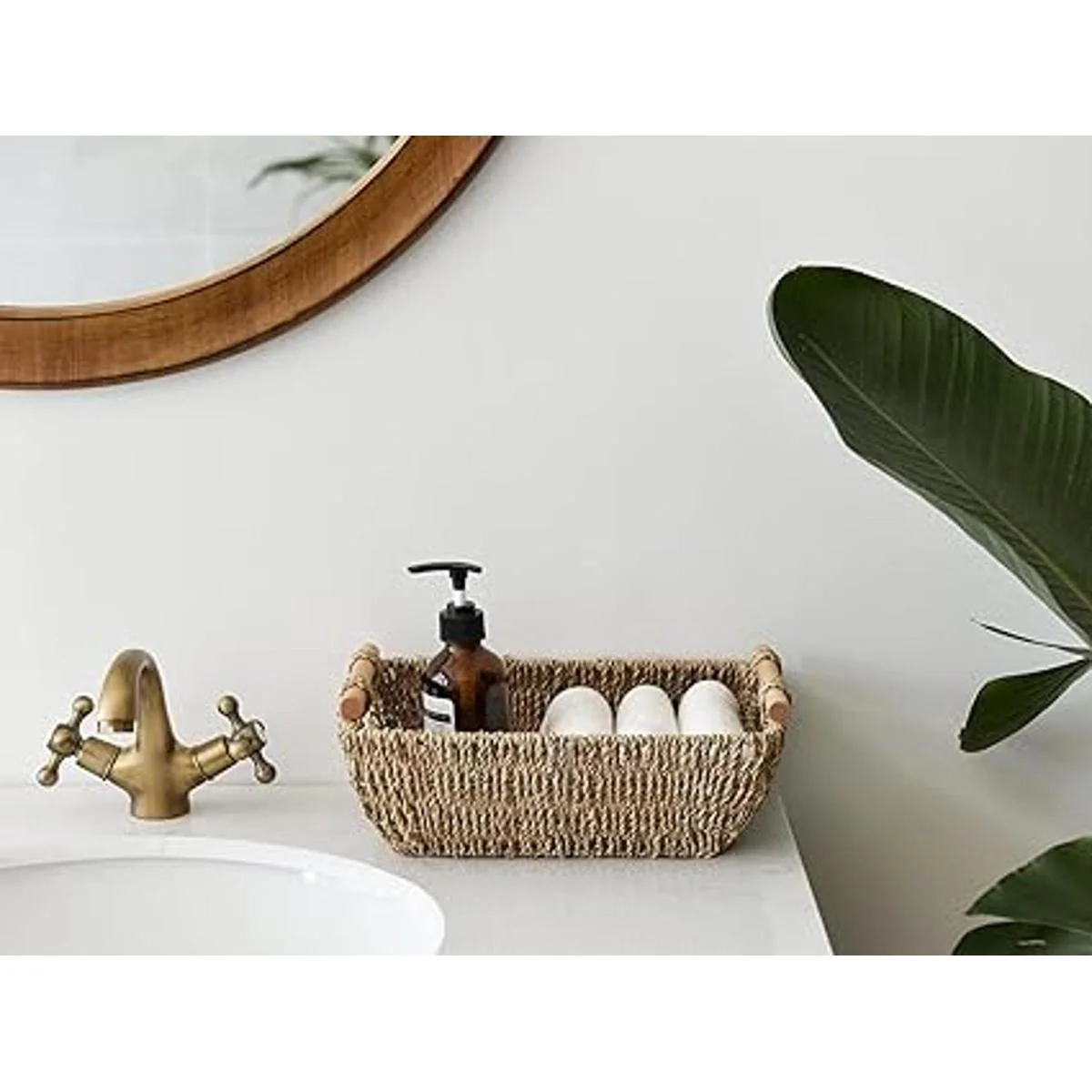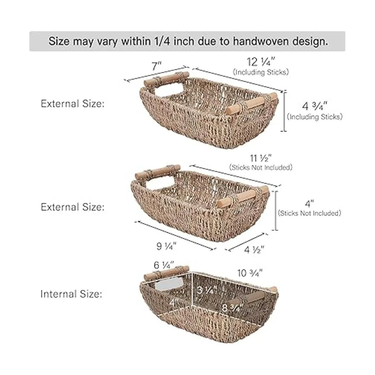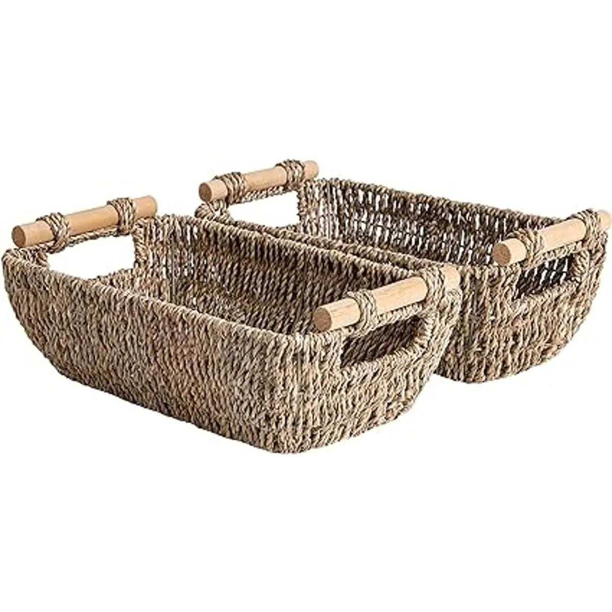 StorageWorks Cestas pequeñas de mimbre tejidas a mano, cestas de almacenamiento de algas marinas con asas de madera, 12 x 7 x 4 pulgadas, paquete de 2