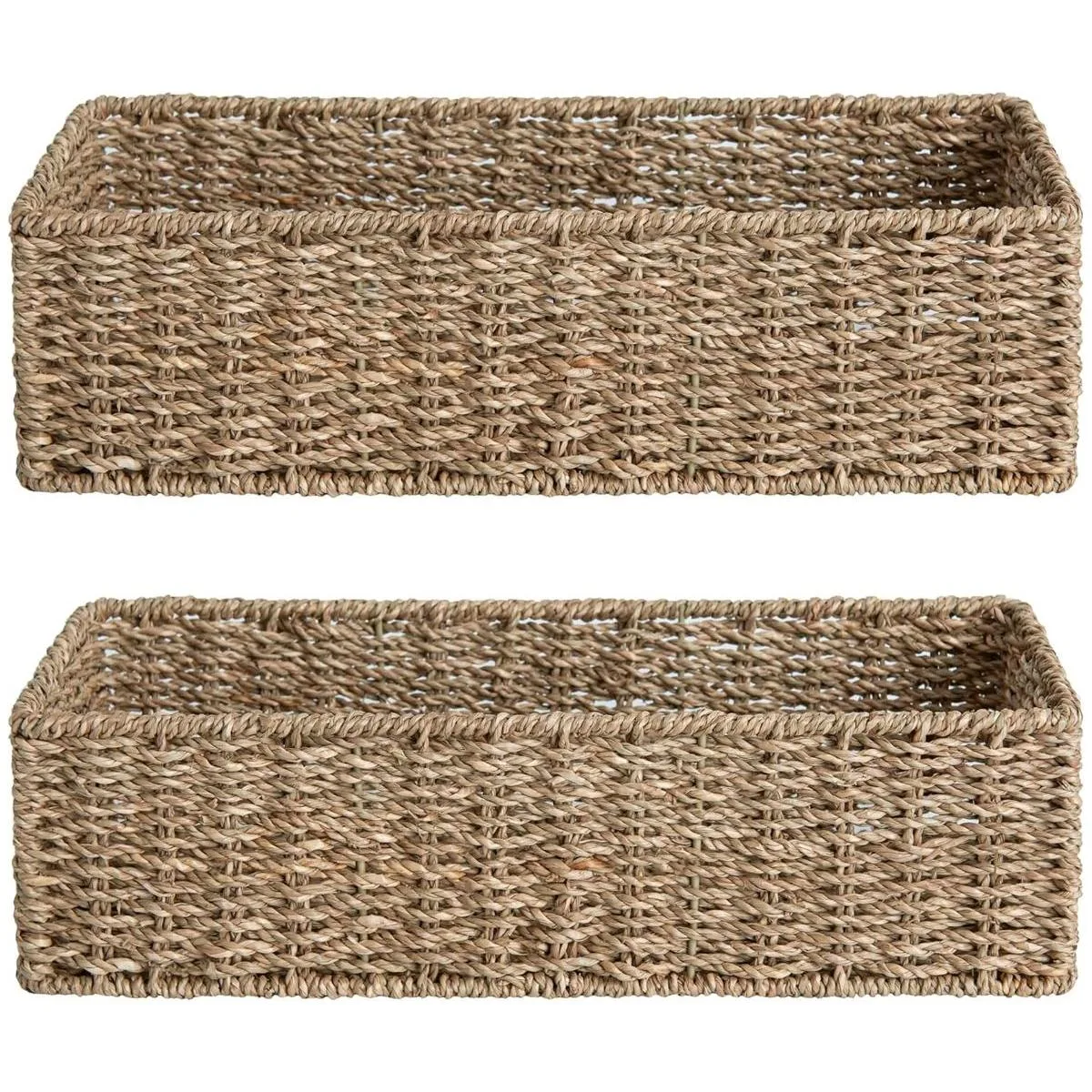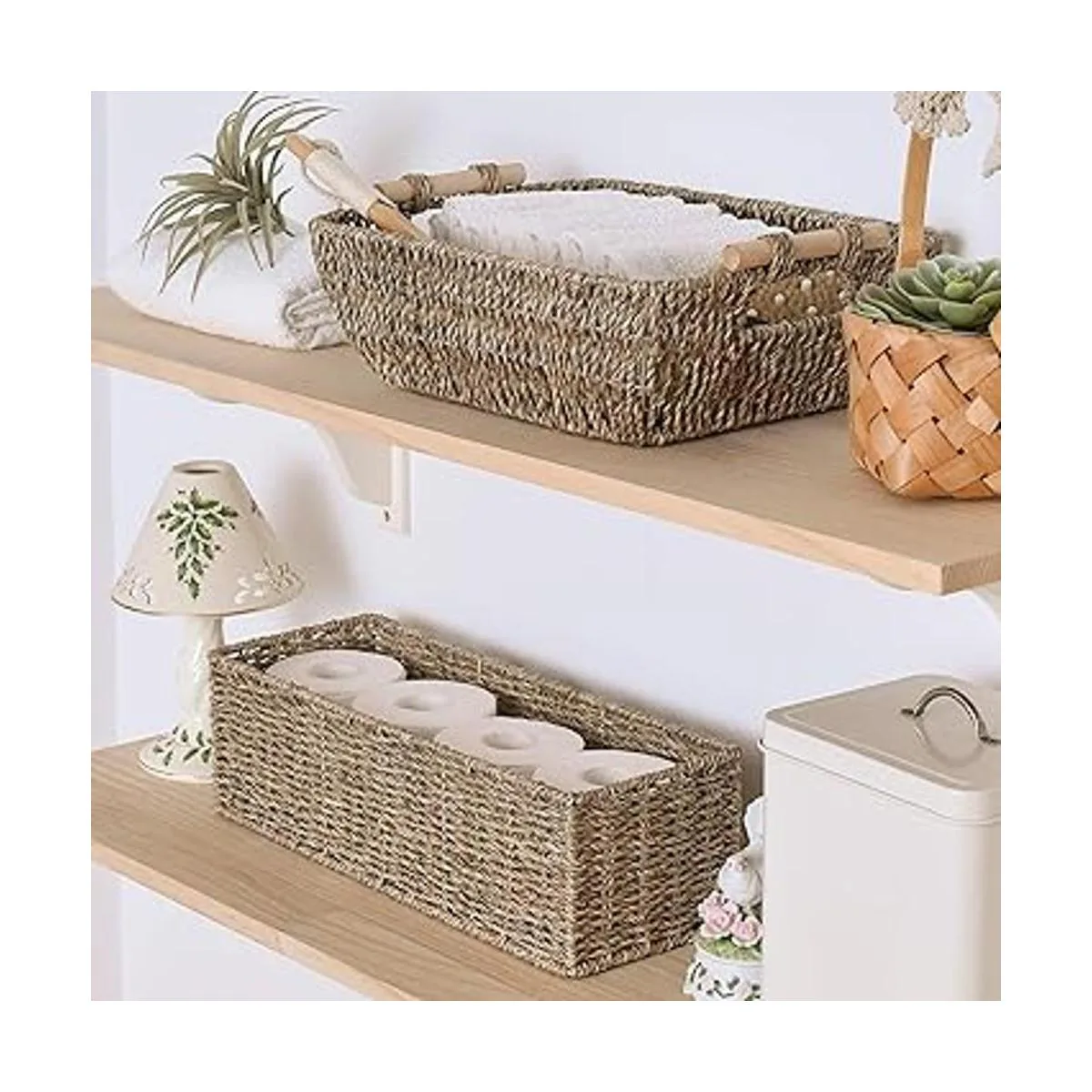 StorageWorks Seagrass Cesta de almacenamiento tejida, cesta organizadora de almacenamiento de baño, cesta de papel higiénico, cesta de almacenamiento para la parte superior del inodoro, 15 de largo x 6 de ancho x 4 de alto, paquete de 2