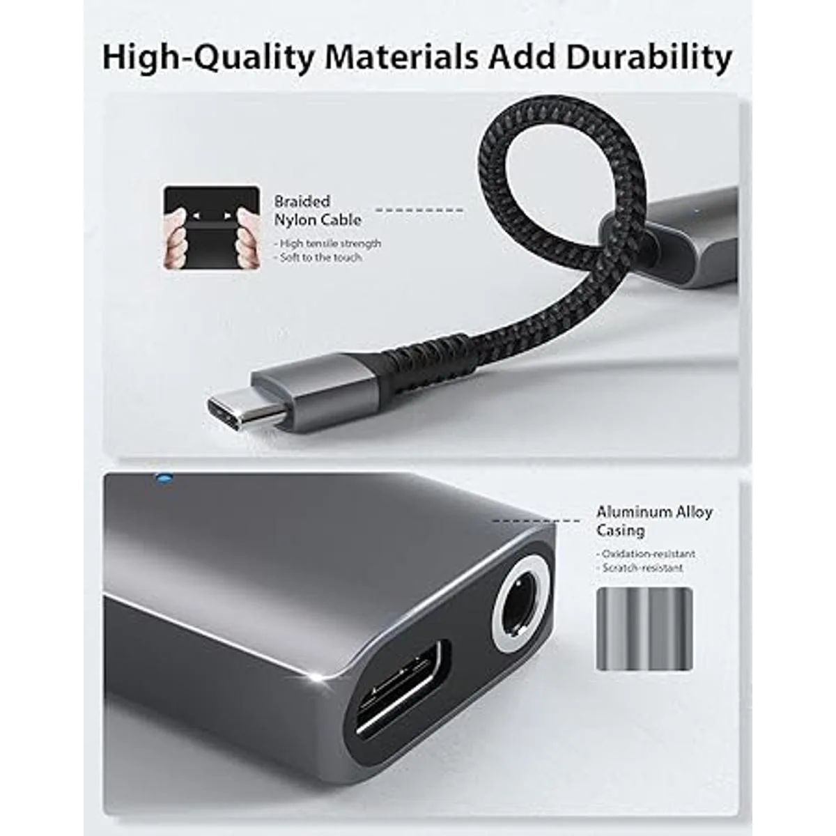 Calidad de sonido de alta resolución: el más alto soporta DAC con 24 bits/96 KHz. Adaptador Stouchi de 0.138 in compatible con CTIA y OMTP. El chip DAC de alta resolución minimiza la pérdida de transmisión de señal y garantiza una transmisión de audio estable y de alta fidelidad.