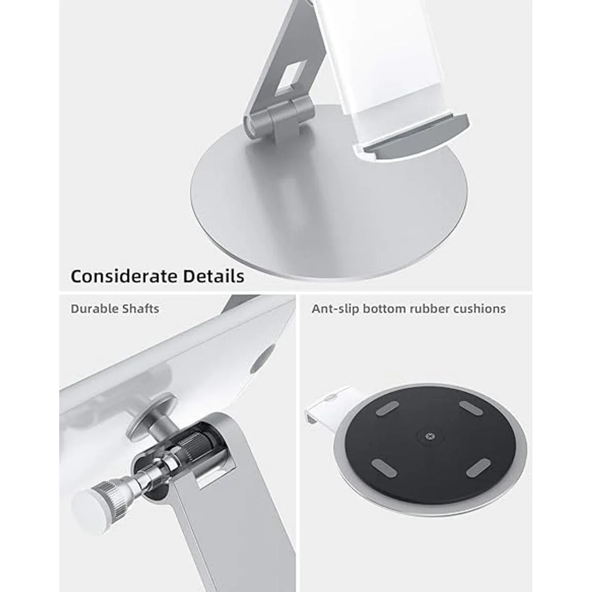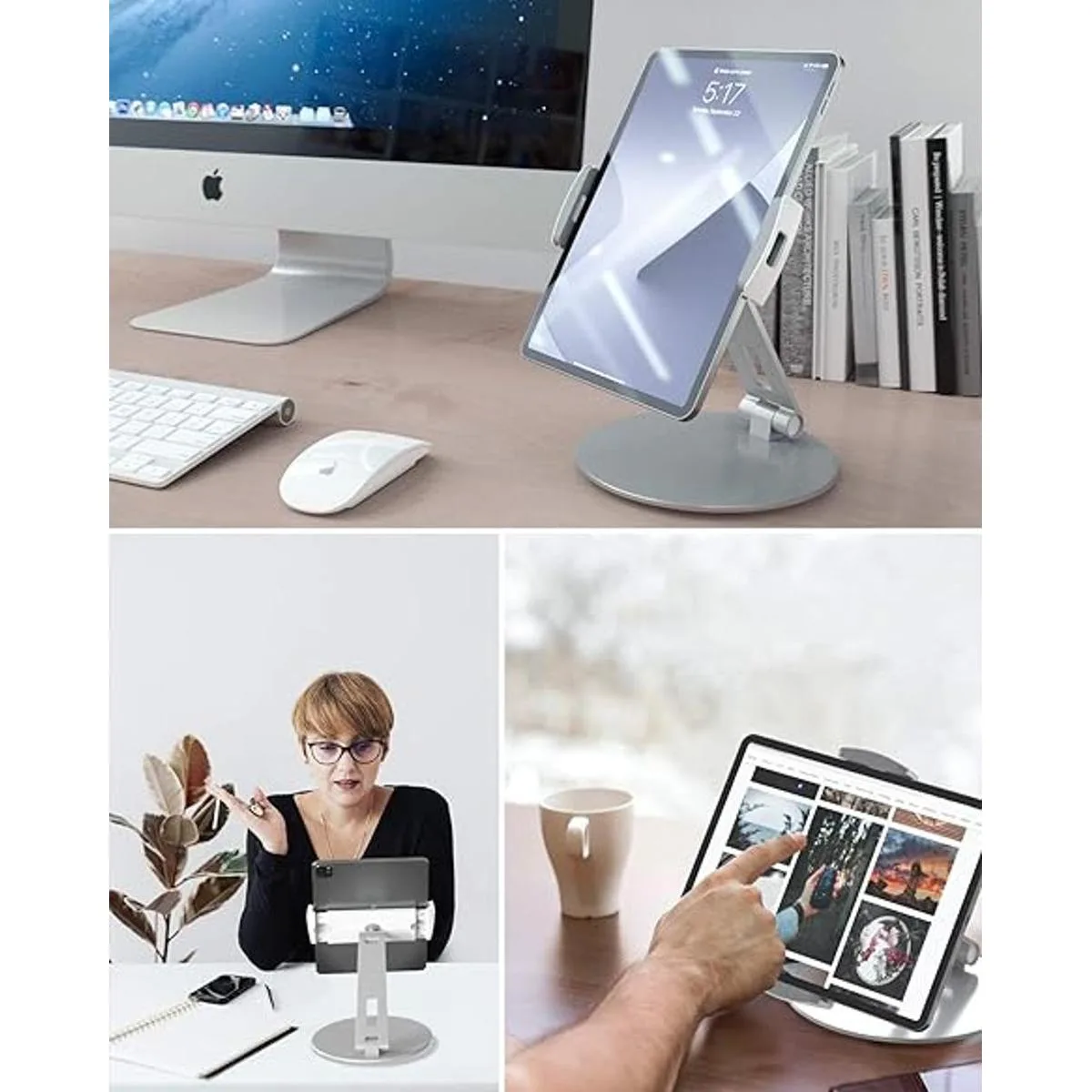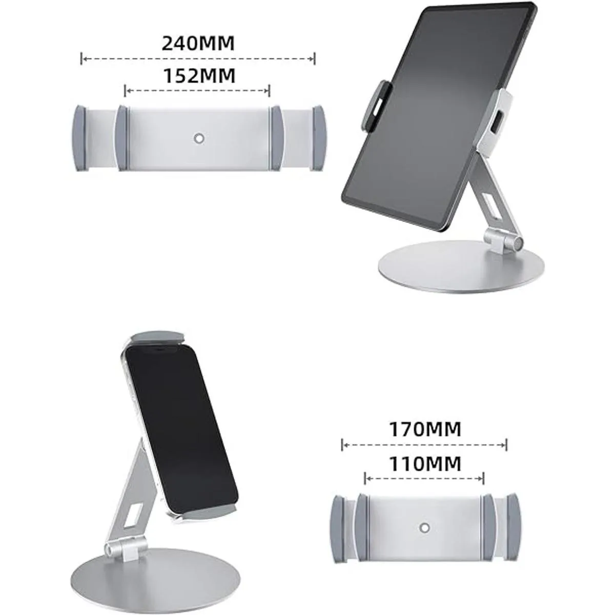 Stouchi Soporte giratorio para tablet de 360 para iPhone 13, soporte de escritorio ajustable para iPad Mini 2021, quiosco POS, Surface Pro 4, iPad ProAir se adapta a tabletas y teléfonos de 4 a 14 pulgadas, color plateado