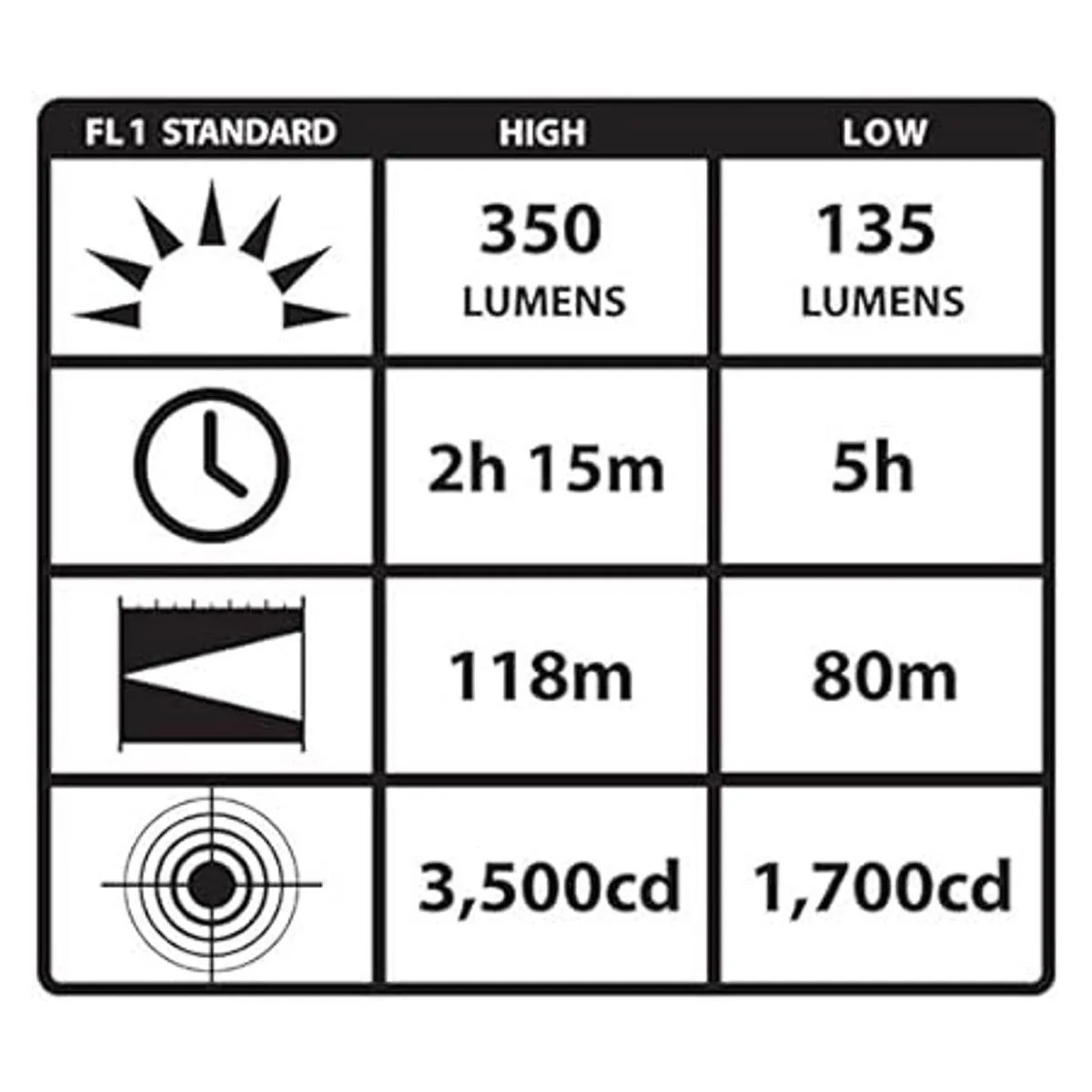 Streamlight 69333 Vantage II Luz de montaje industrial de 350 lúmenes con luz trasera LED azul, color negro