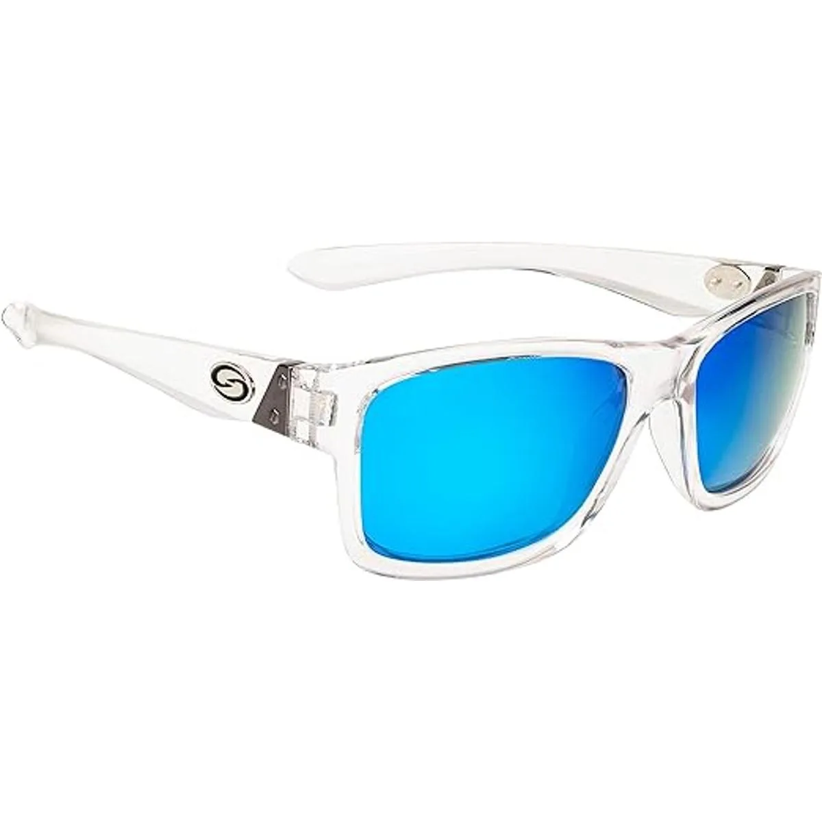 Strike King Plus Platte Gafas de sol polarizadas, protección UVAUVB, marco transparente brillante, lente de base gris espejo