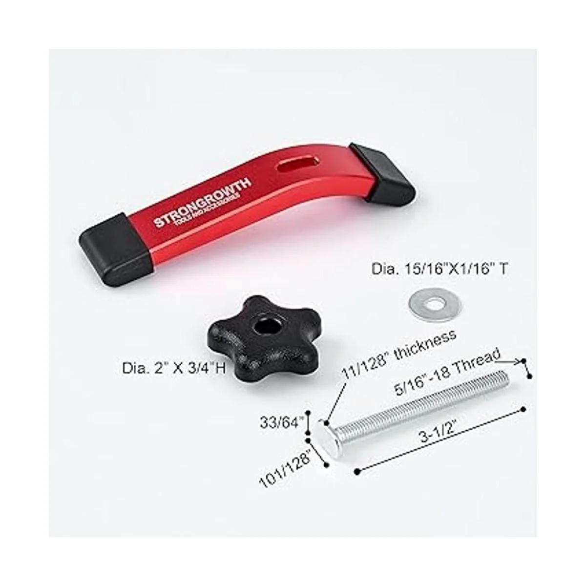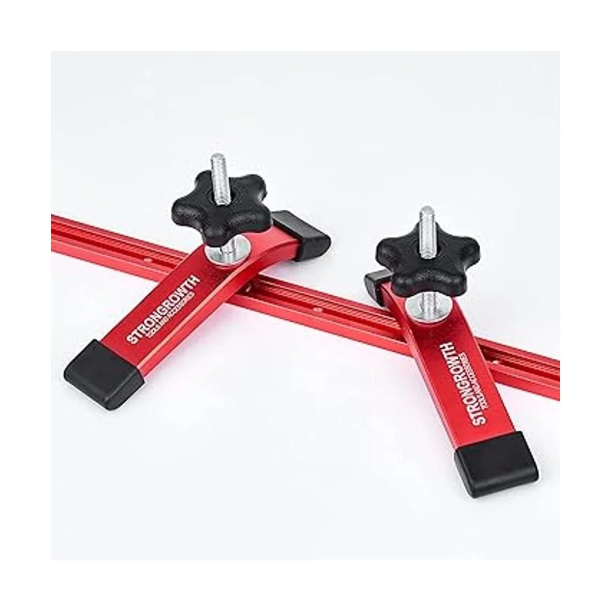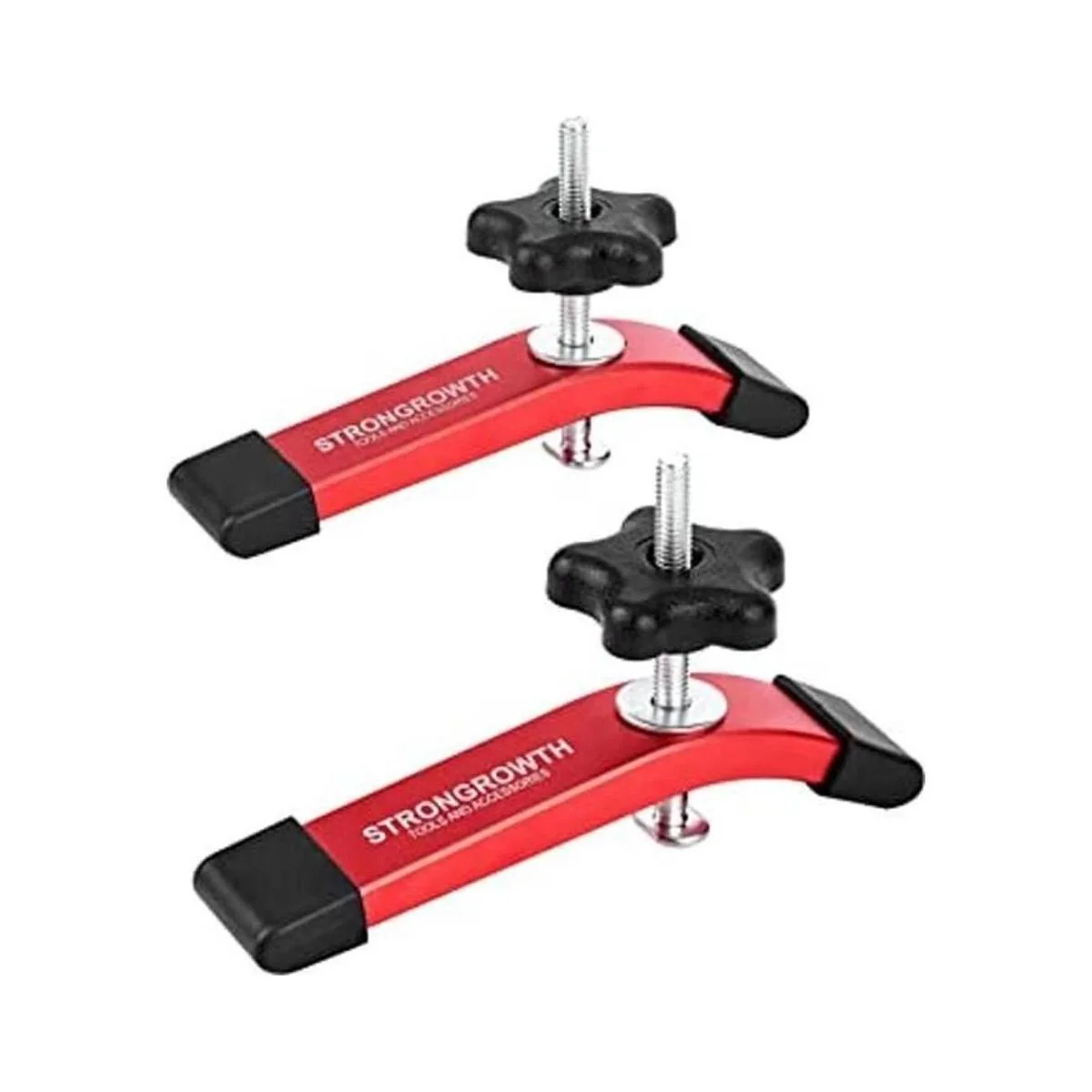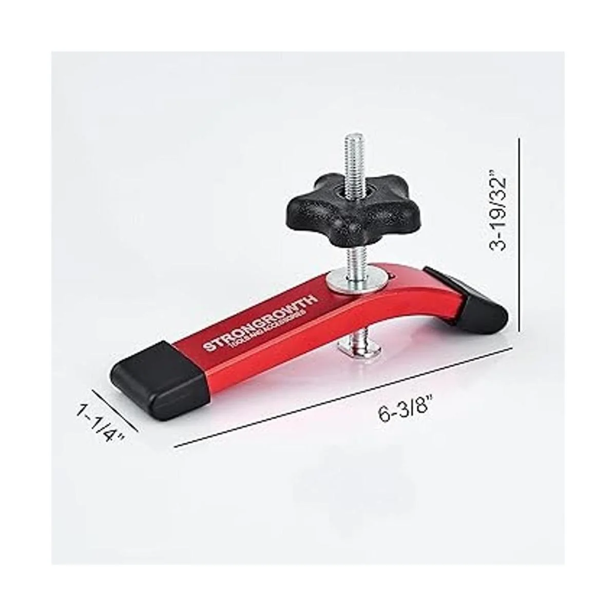 STRONGROWTH Abrazaderas de sujeción de pista en T, abrazaderas universales de doble corte en T, 638 pulgadas de largo x 114 pulgadas de ancho, carpintería y abrazaderas, anodizado con chorro de arena fino, color rojo, paquete de 2 unidades