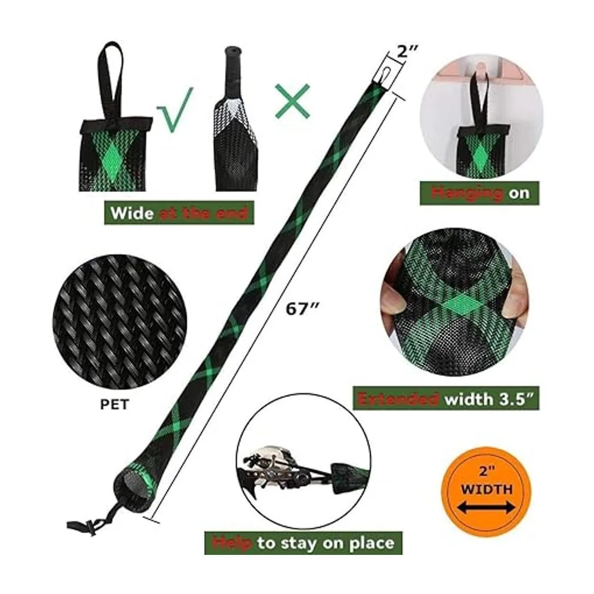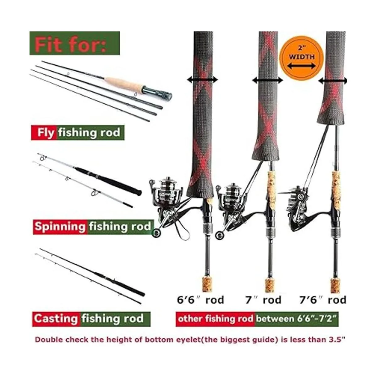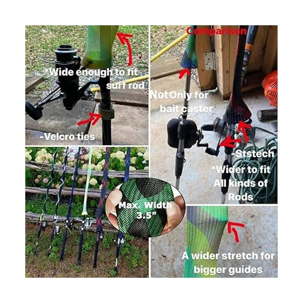 1. Ancho mejorado: la funda de la caña de pescar es expandible y flexible para que sea fácil de poner y quitar. Se expande hasta 3.5 pulgadas de ancho hace que tus cañas pasen por la guía más grande fácilmente. Fuerte elasticidad, no te preocupes por engancharse o por que se caigan.
