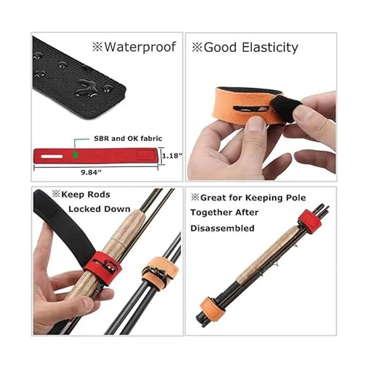 3. Material duradero: la funda de la caña de pescar está hecha de PET, resistente al desgaste y al calor. Es una buena manera de proteger tu caña de pescar de rasguños y arañazos cuando se mueve o almacena. Las correas de la caña están hechas de tela SBR y OK, suave impermeable y fácil ajuste. Con estas correas de caña puedes atar tus cañas de pescar juntas para evitar la dispersión en la bolsa de caña de pescar o almacenamiento.