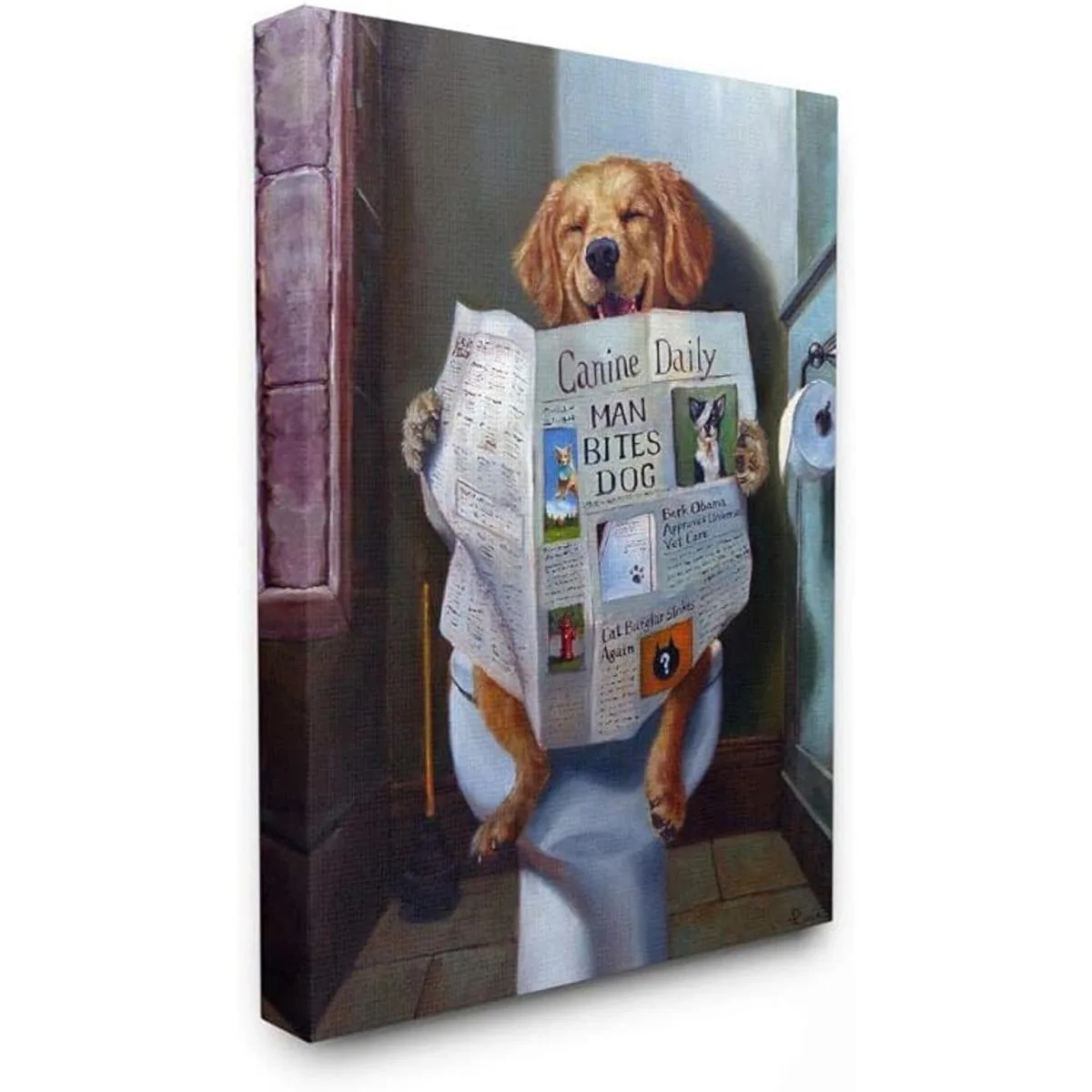 Stupell Industries Lienzo divertido para la pared, diseño de texto en inglés Dog Reading The Newspaper On Wine, 24 x 30 pulgadas, multicolor