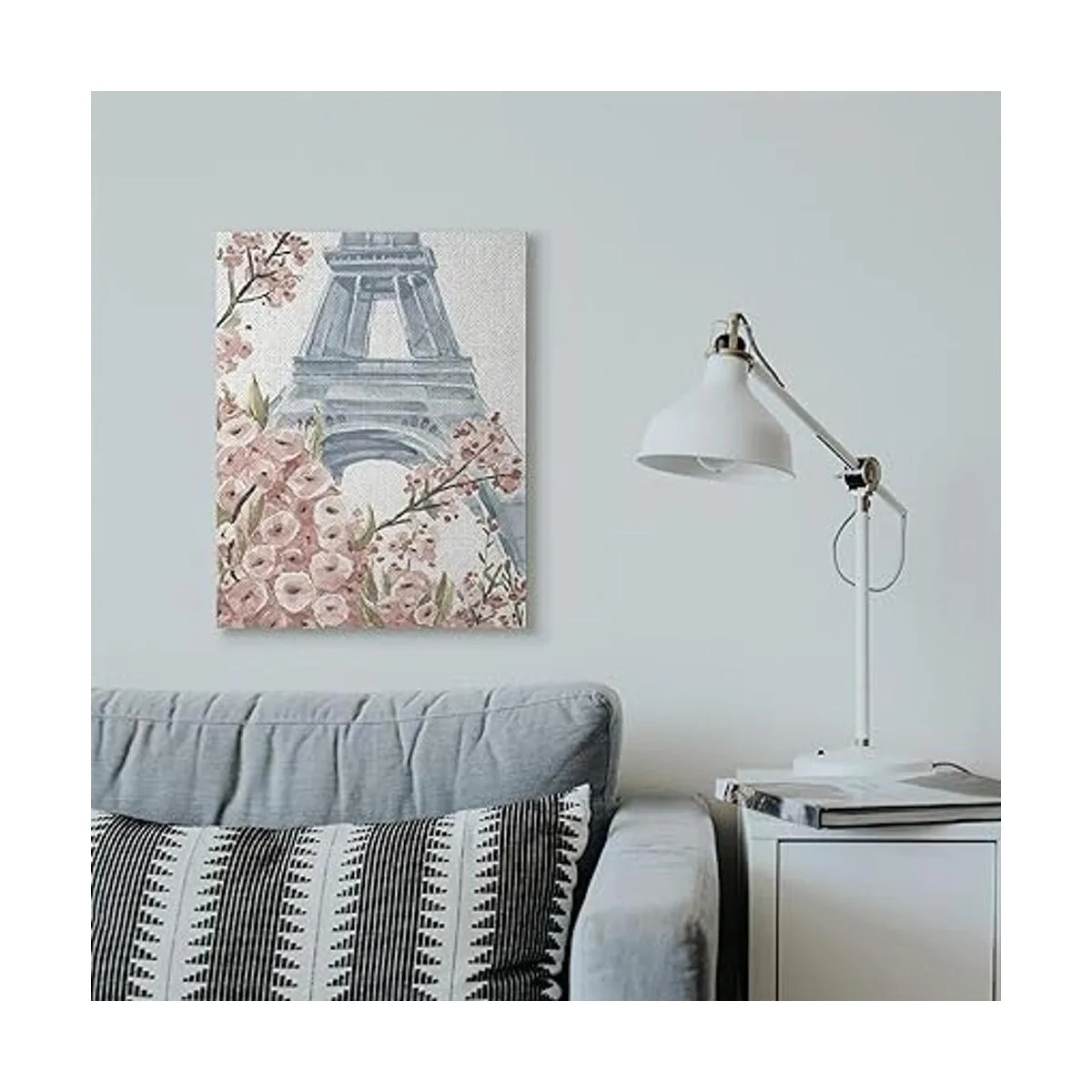 Stupell Industries Paris Flowers Lienzo decorativo para pared, diseño de la torre Eiffel 9.4 x 11.8 in, color rosa y azul