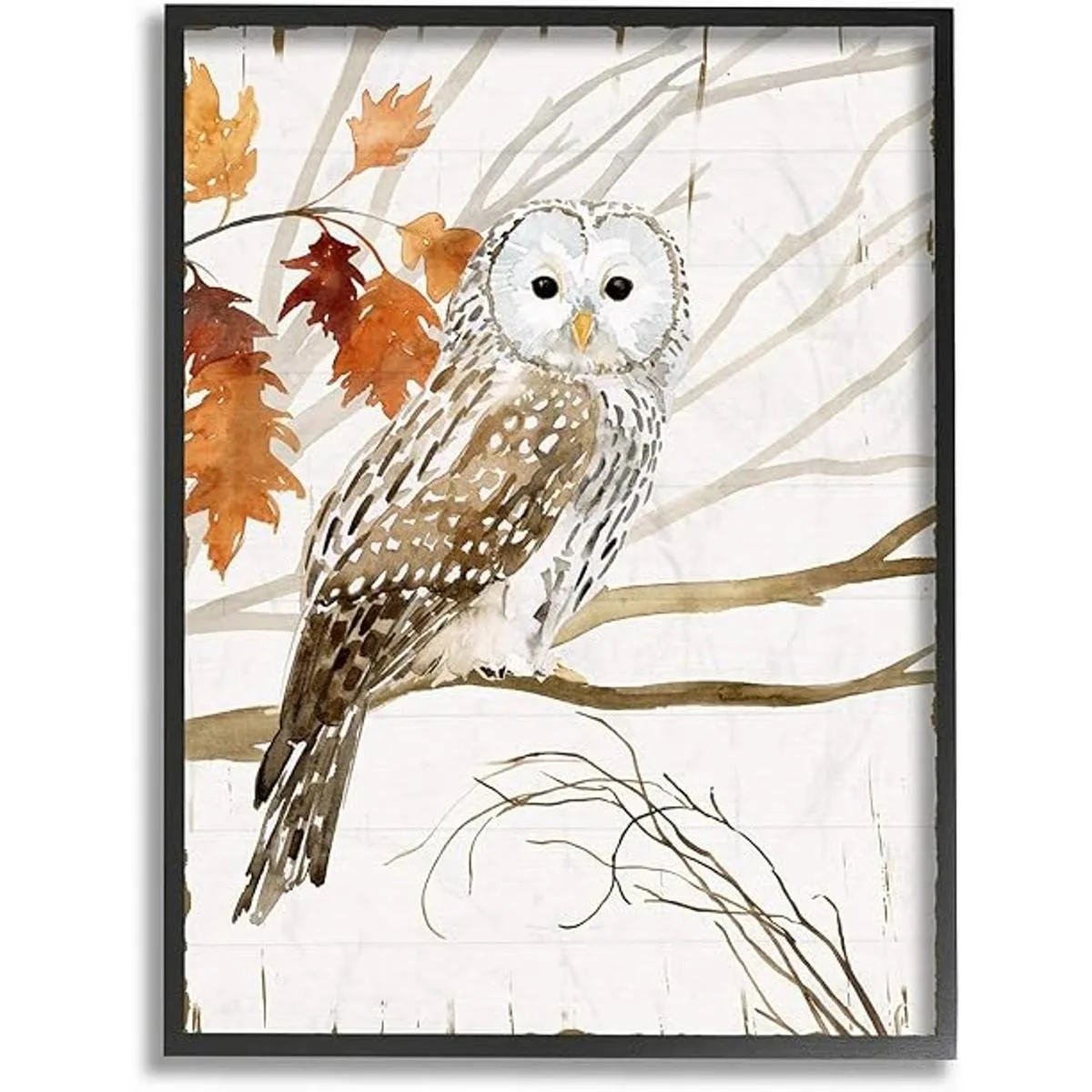 Stupell Industries Pintura de acuarela con diseño de búho en el bosque otoñal, color negro, 11 x 14, diseño del artista Victoria Borges