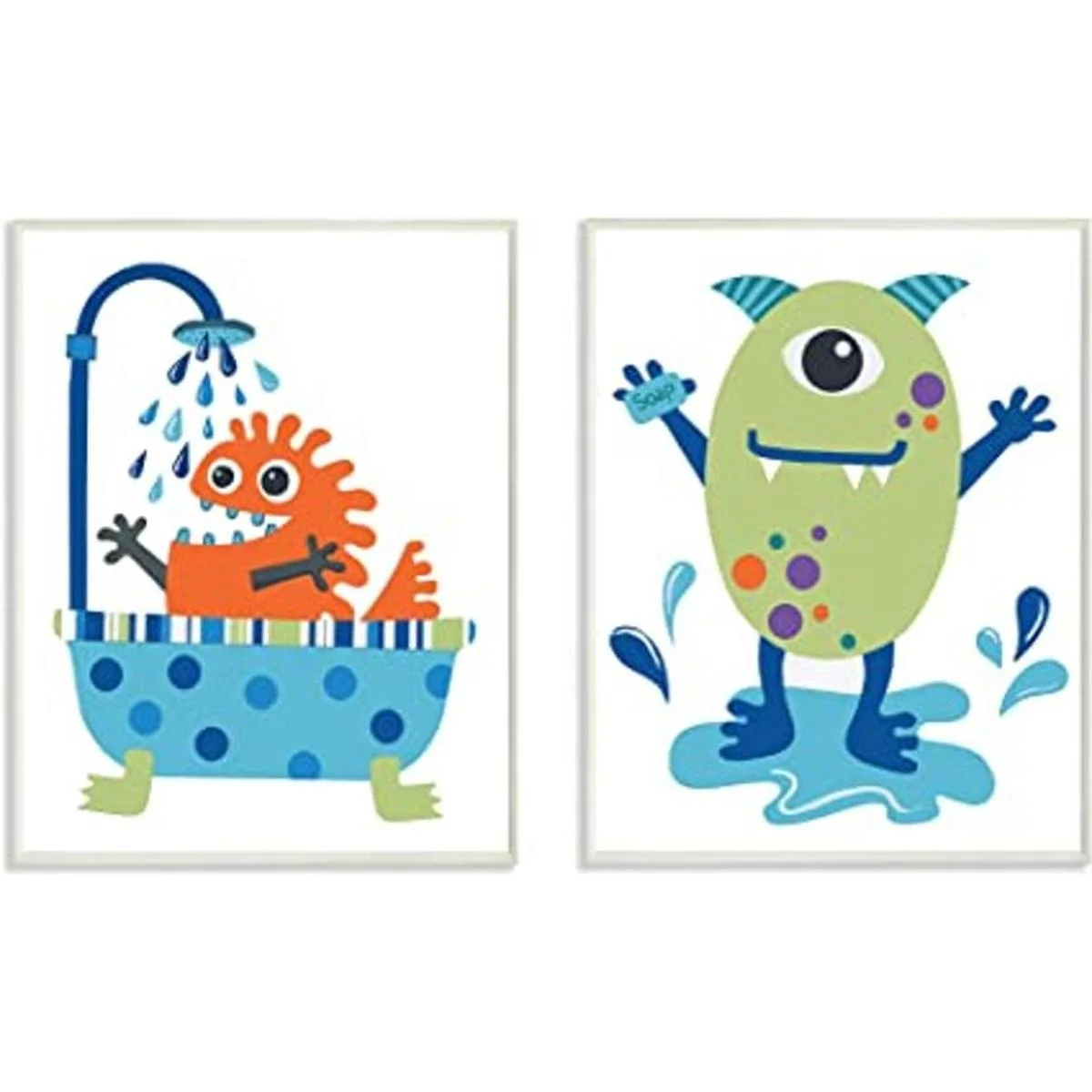 Stupell Wall Art Home Décor Monstruos De Baño Buddies 2pc placa Set, 10 x 0.5 x 15, PROUDLY fabricado en EE. UU.