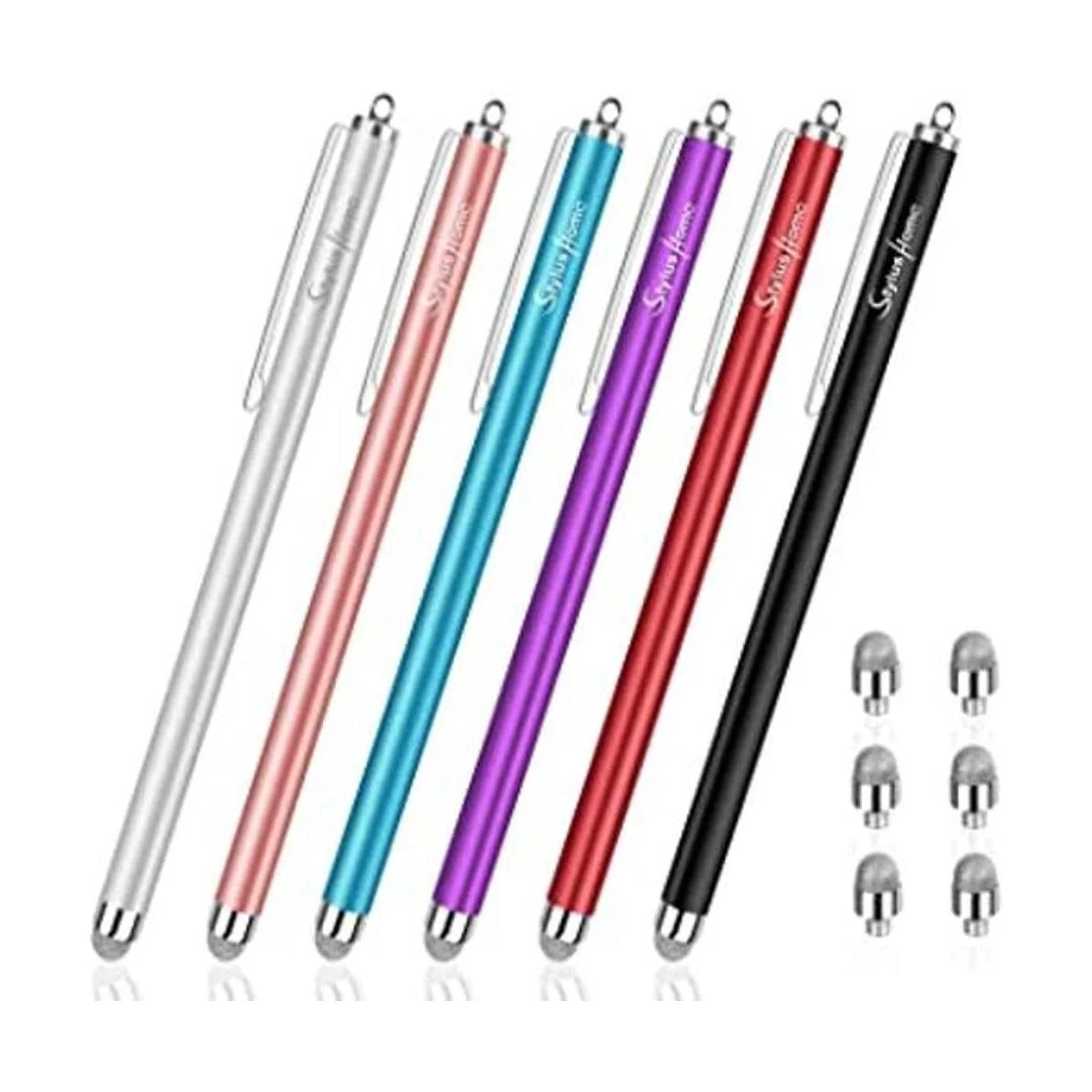 StylusHome Lápices para pantallas táctiles 6 piezas, puntas de fibra capacitiva de sensibilidad, lápiz táctil con 6 puntas extra reemplazables para iPad iPhone, tabletas, todos los dispositivos táctiles universales