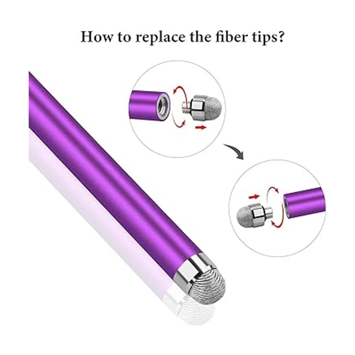 Puntas de fibra reemplazables: las puntas de fibra de estos lápices capacitivos son reemplazables. El reemplazo se puede hacer en cuestión de segundos sin herramientas. 6 puntas de fibra de repuesto adicionales, prolongan eficazmente la vida útil del lápiz capacitivo.