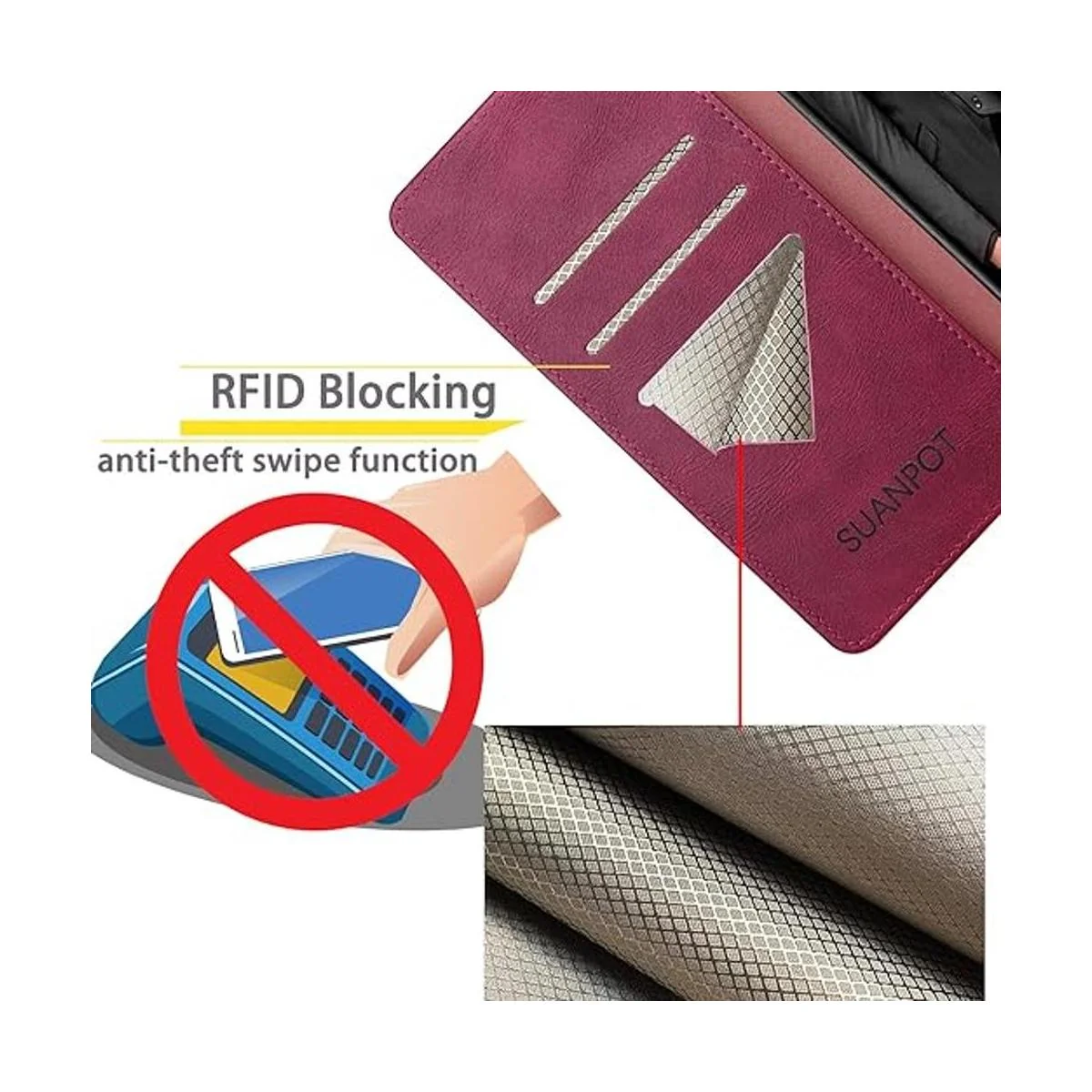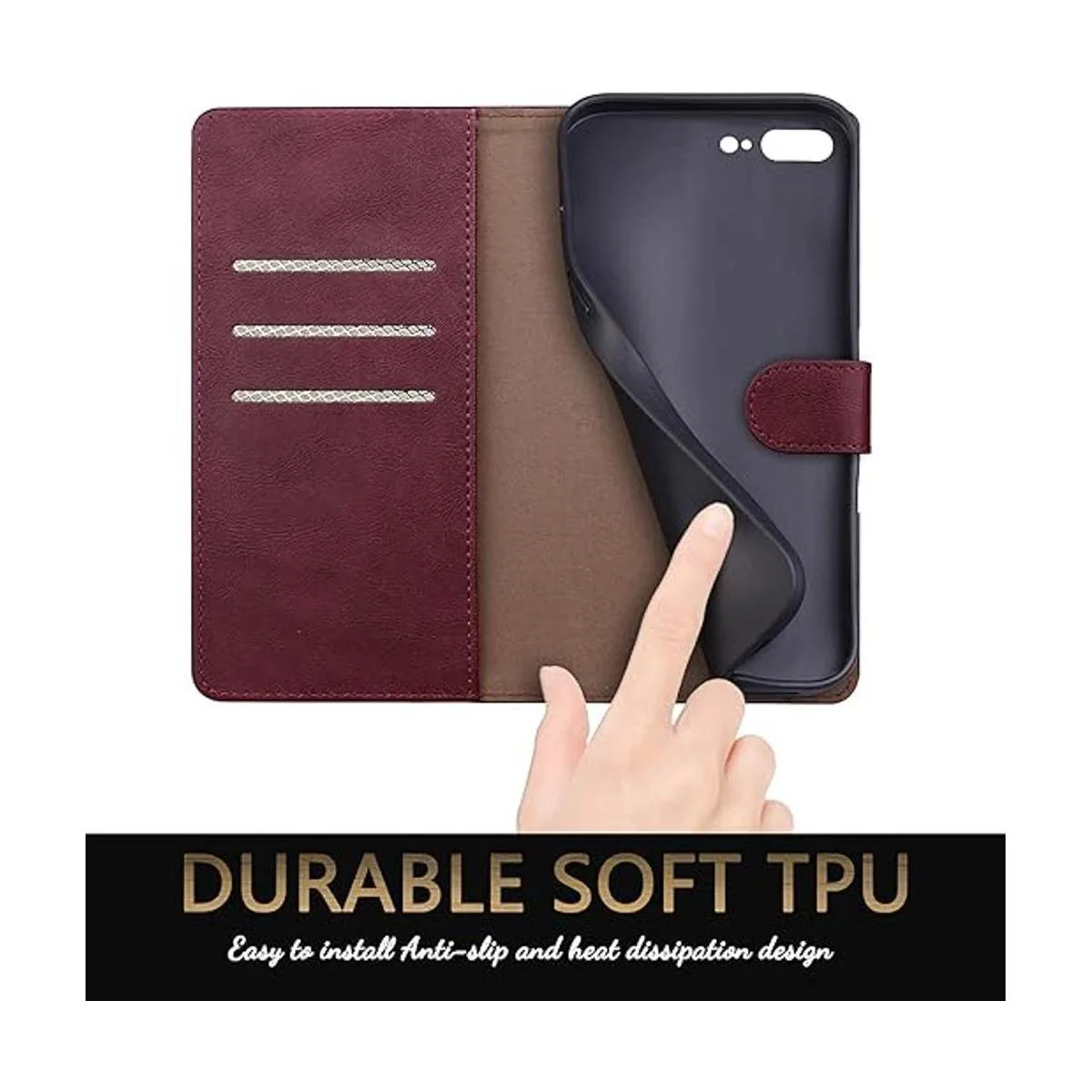 SUANPOT Funda para iPhone 7 Plus8 Plus de 5.5 pulgadas no iPhone 78 4.7 pulgadas con bloqueo RFID, funda de cuero tipo cartera con tarjetero de crédito, funda para teléfono con tapa para mujeres y hombres para Apple 7 Plus8 Plus vino rojo