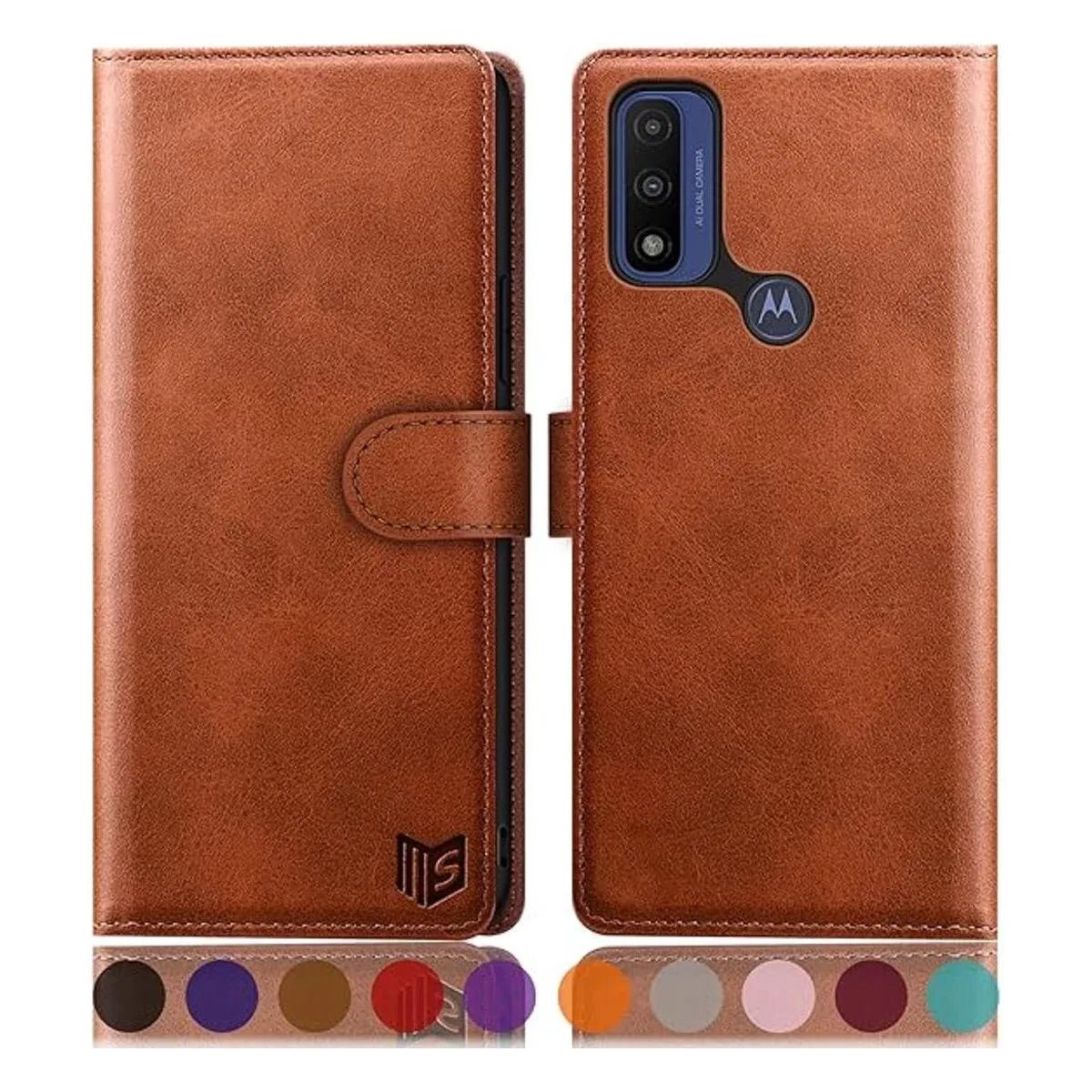 SUANPOT Funda tipo cartera con bloqueo RFID para Motorola Moto G Pure 2021Power 2022 5G, marrón claro
