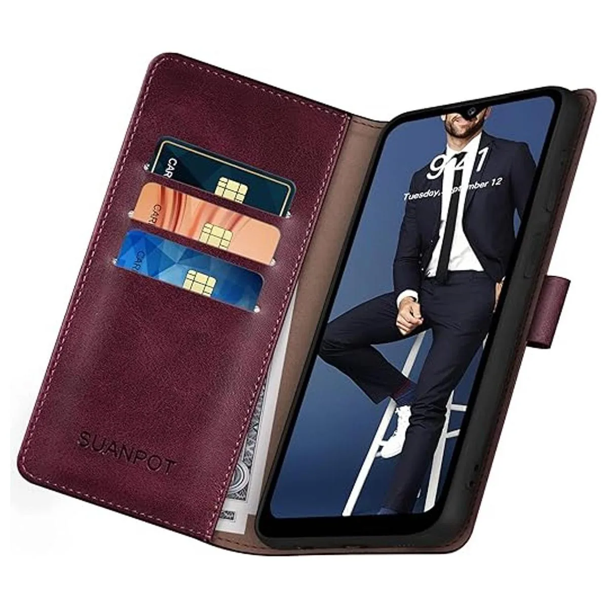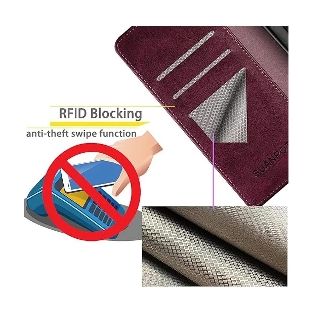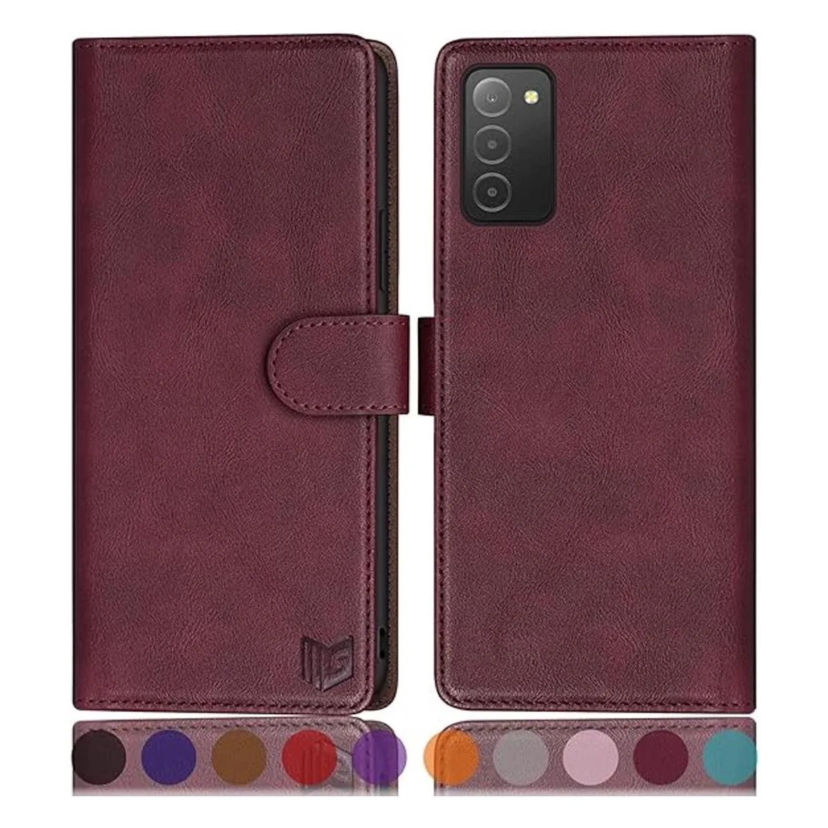 SUANPOT Funda tipo cartera para Samsung Galaxy A03S bloqueo RFID, soporte para tarjetas de crédito, libro de piel sintética, funda a prueba de golpes, funda para Samsung A03S vino rojo