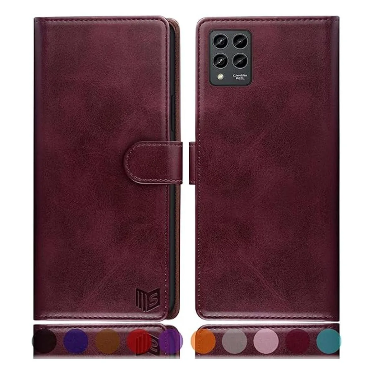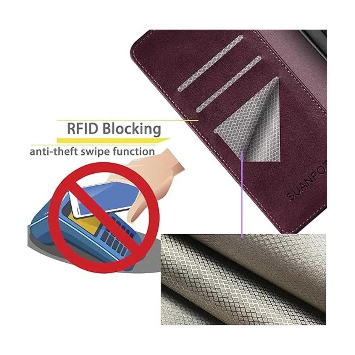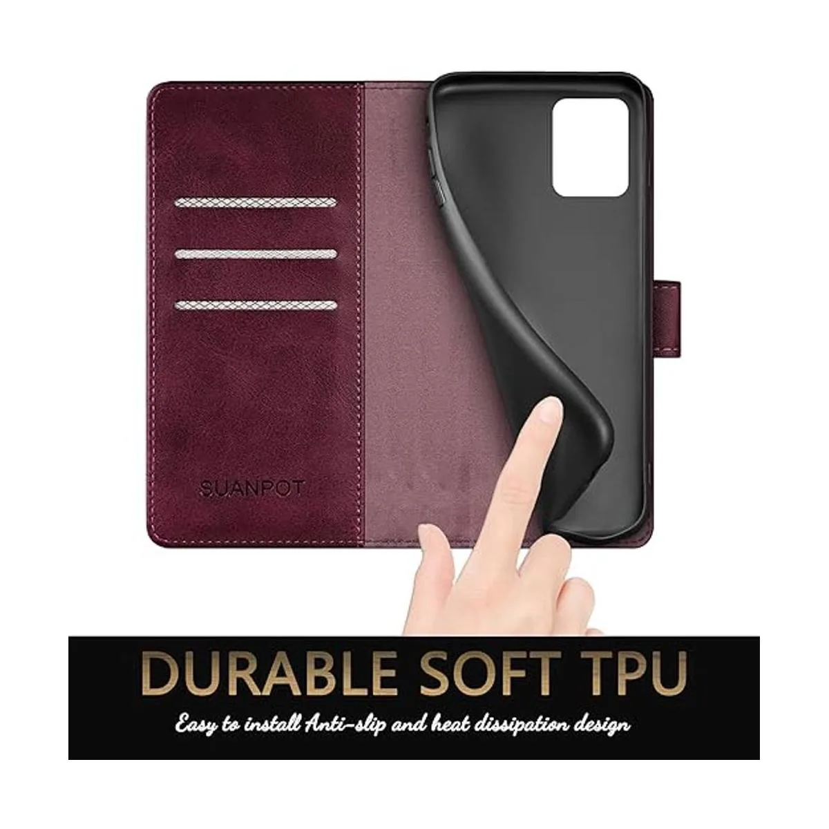 SUANPOT para PU TMobile Revvl 6 Pro 5G Funda tipo cartera color rojo vino