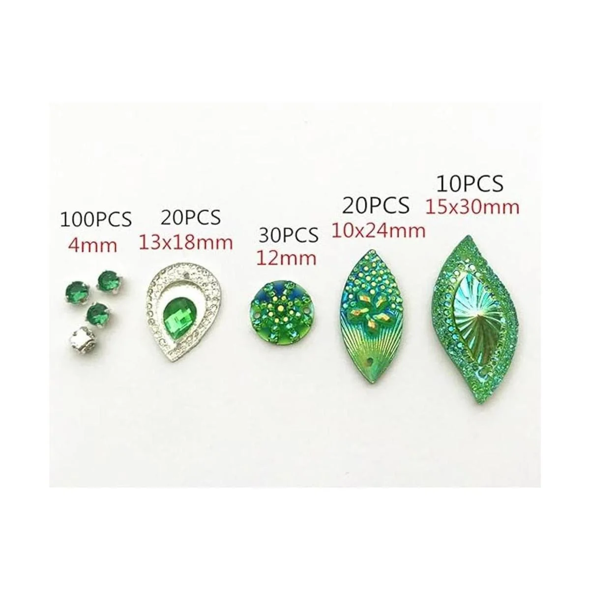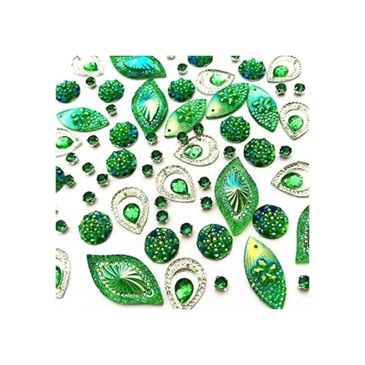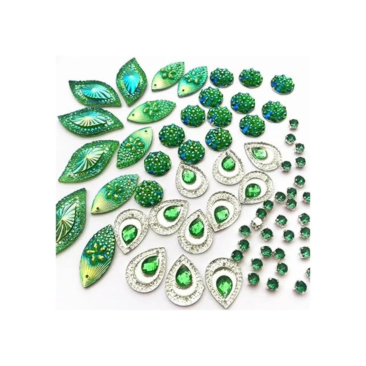 succi shan 180 piezas de formas mixtas impresionantes gemas verdes para coser diamantes de imitación facetados de cristal para decoración de manualidades de bricolaje