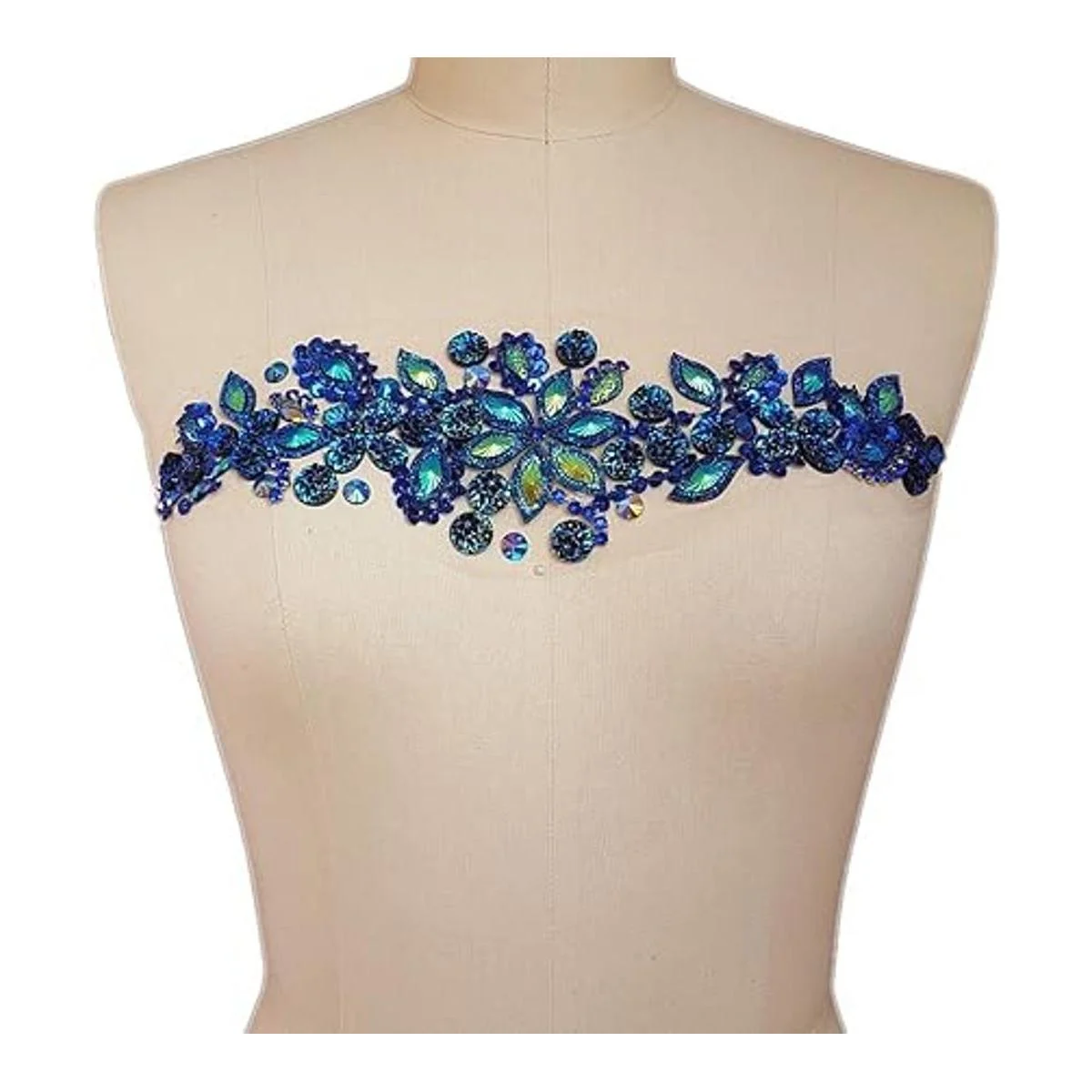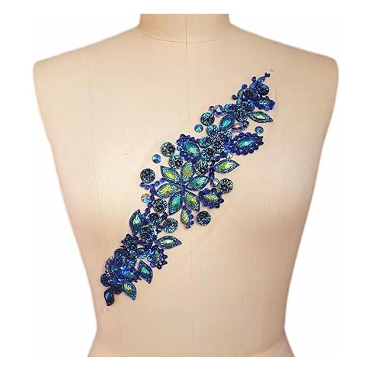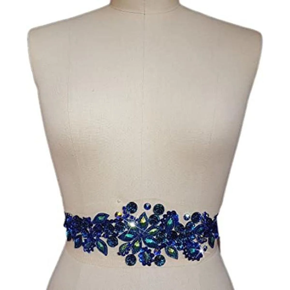 succi shan Parches de cristal brillante hechos a mano puro con diamantes de imitación azules cosidos con piedras, cuentas de lentejuelas, bricolaje para decoración de vestidos de boda, accesorio de 3.9 x 14.2 pulgadas, decoración de cintura de cinturón