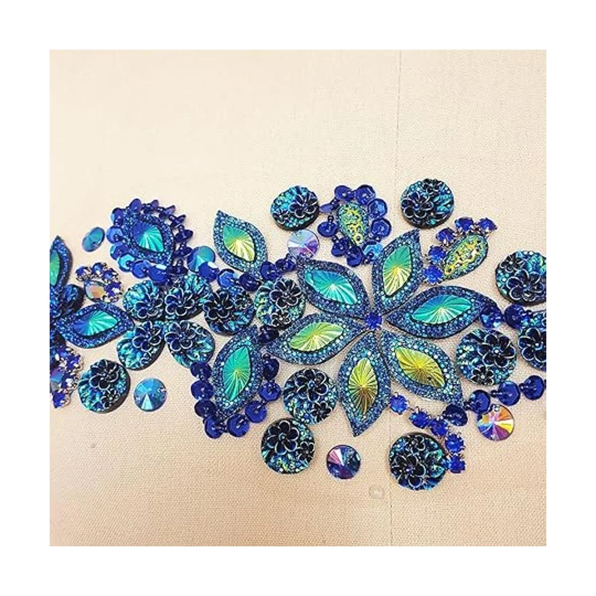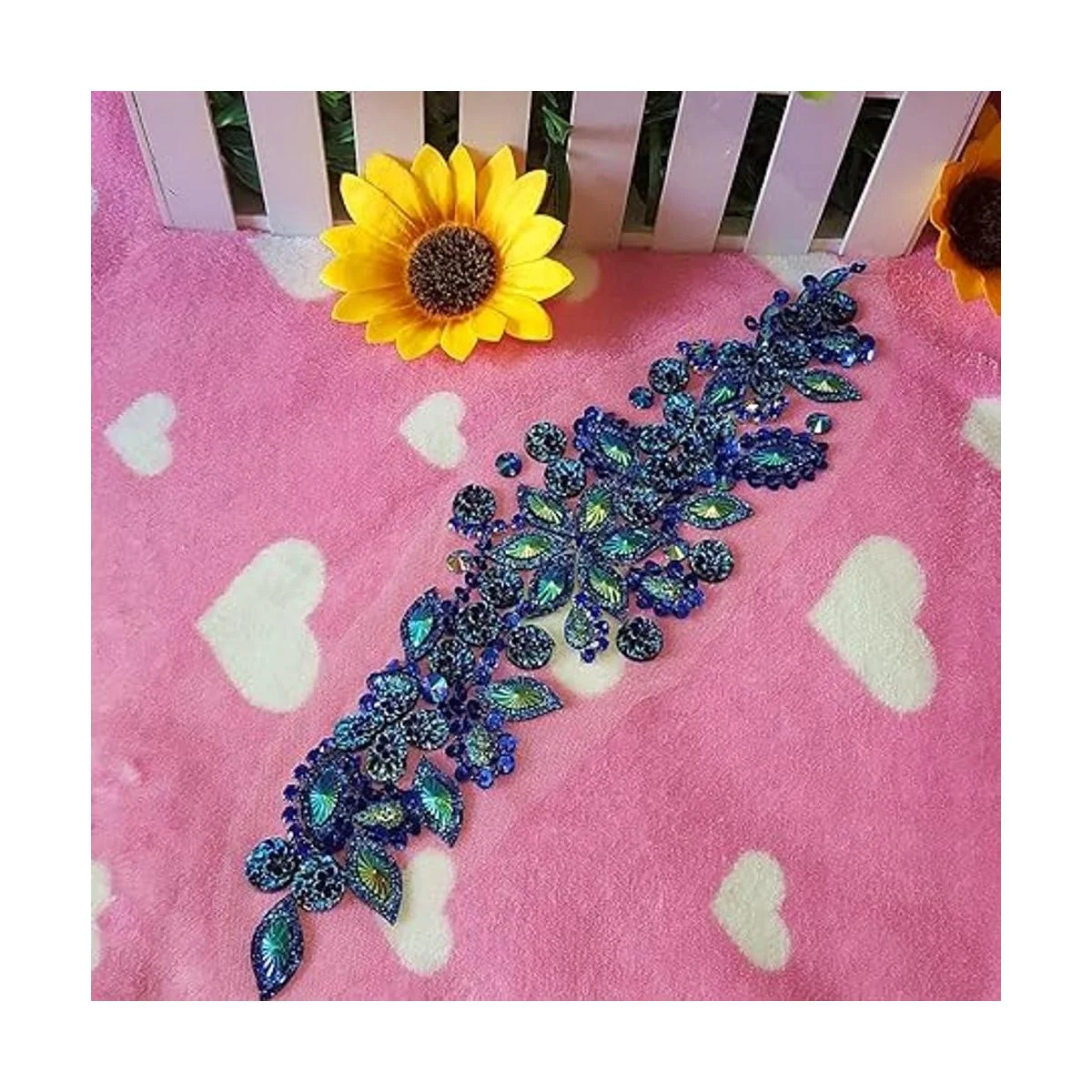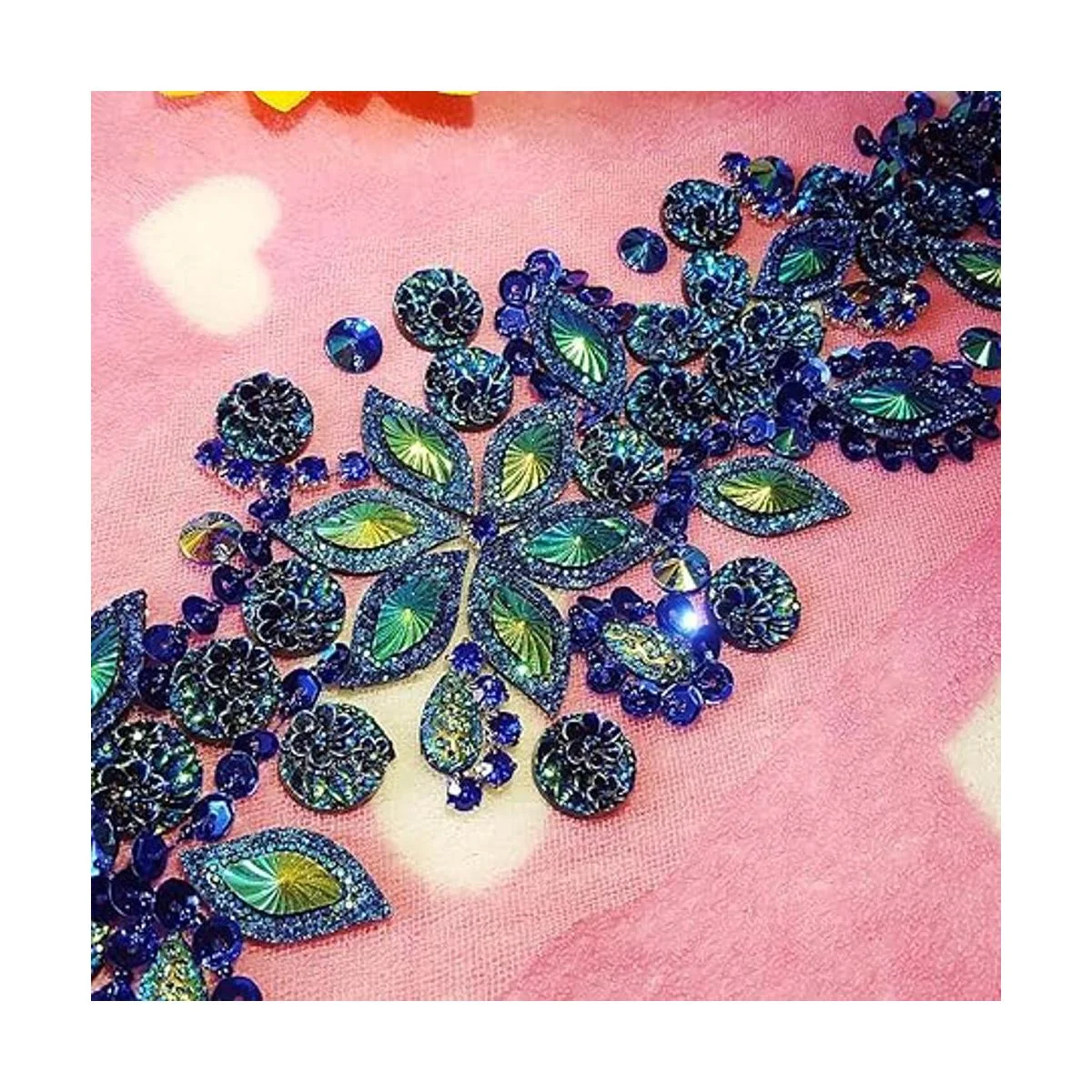 succi shan Parches de cristal brillante hechos a mano puro con diamantes de imitación azules cosidos con piedras, cuentas de lentejuelas, bricolaje para decoración de vestidos de boda, accesorio de 3.9 x 14.2 pulgadas, decoración de cintura de cinturón