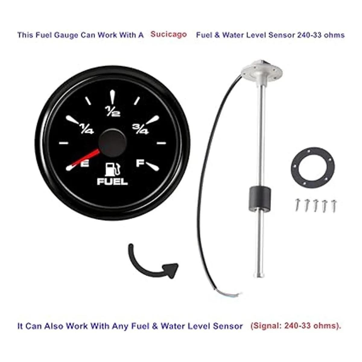 Ajustable y amplia aplicación: el medidor de combustible para barco SuBicago está diseñado para medir y mostrar la cantidad de gas o combustible en el tanque de gas de tu barco o vehículo. Entrada de señal: 0190 ohm, 24033 ohm, 24030 ohm, 0180 ohm, 10180 ohm.