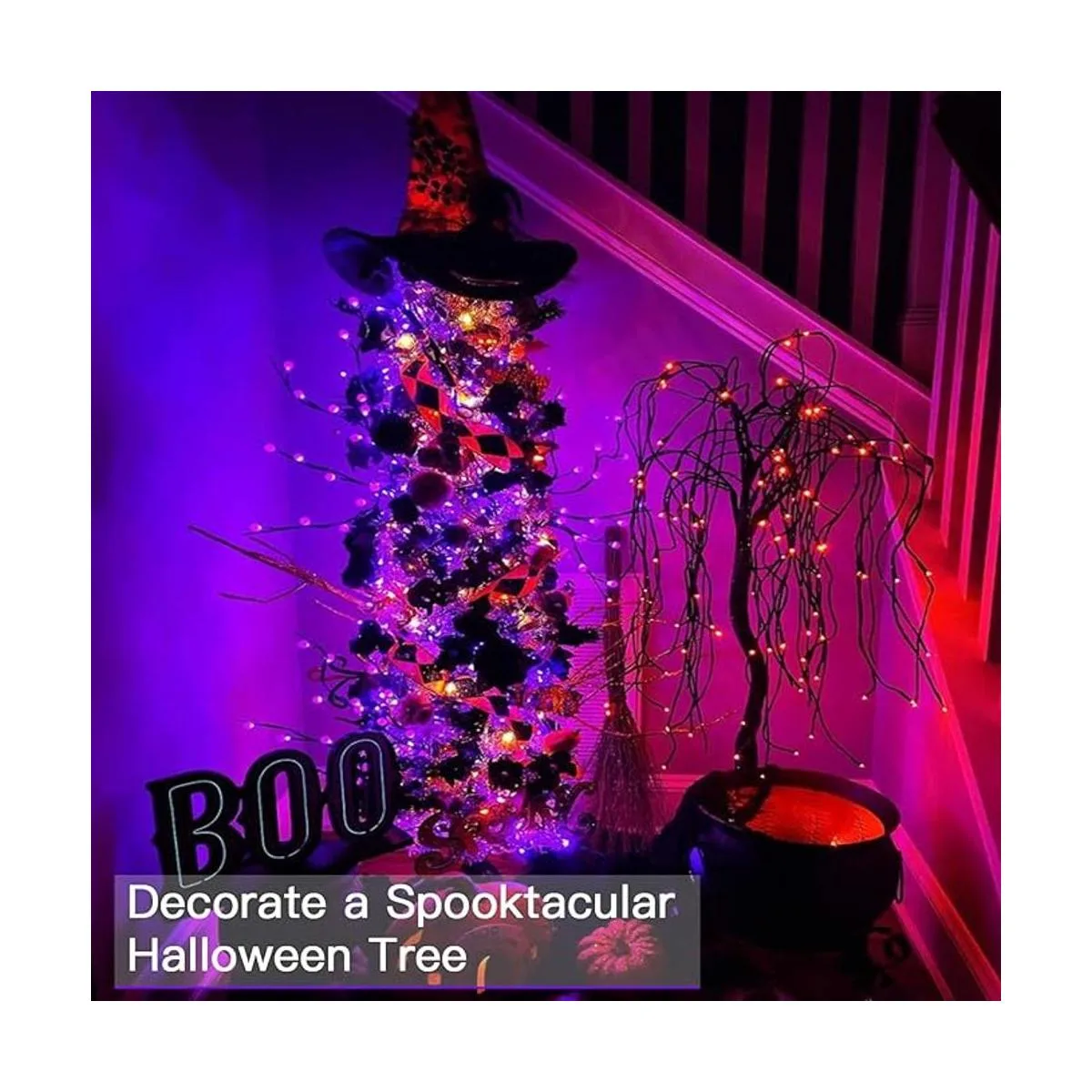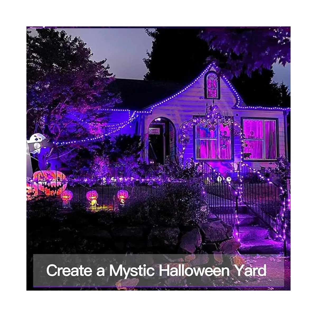 Luces para exteriores de Halloween: paquete de 2 luces moradas, 7 colores disponibles, 8 modos de luz diferentes, 33 pies de largo por cuerda, tasa de impermeabilidad IP44, te da más posibilidades de mostrar tu creatividad en términos de decorar una espectacular exhibición de Halloween. Haz las decoraciones de patio de Halloween más espeluznantes este Halloween.