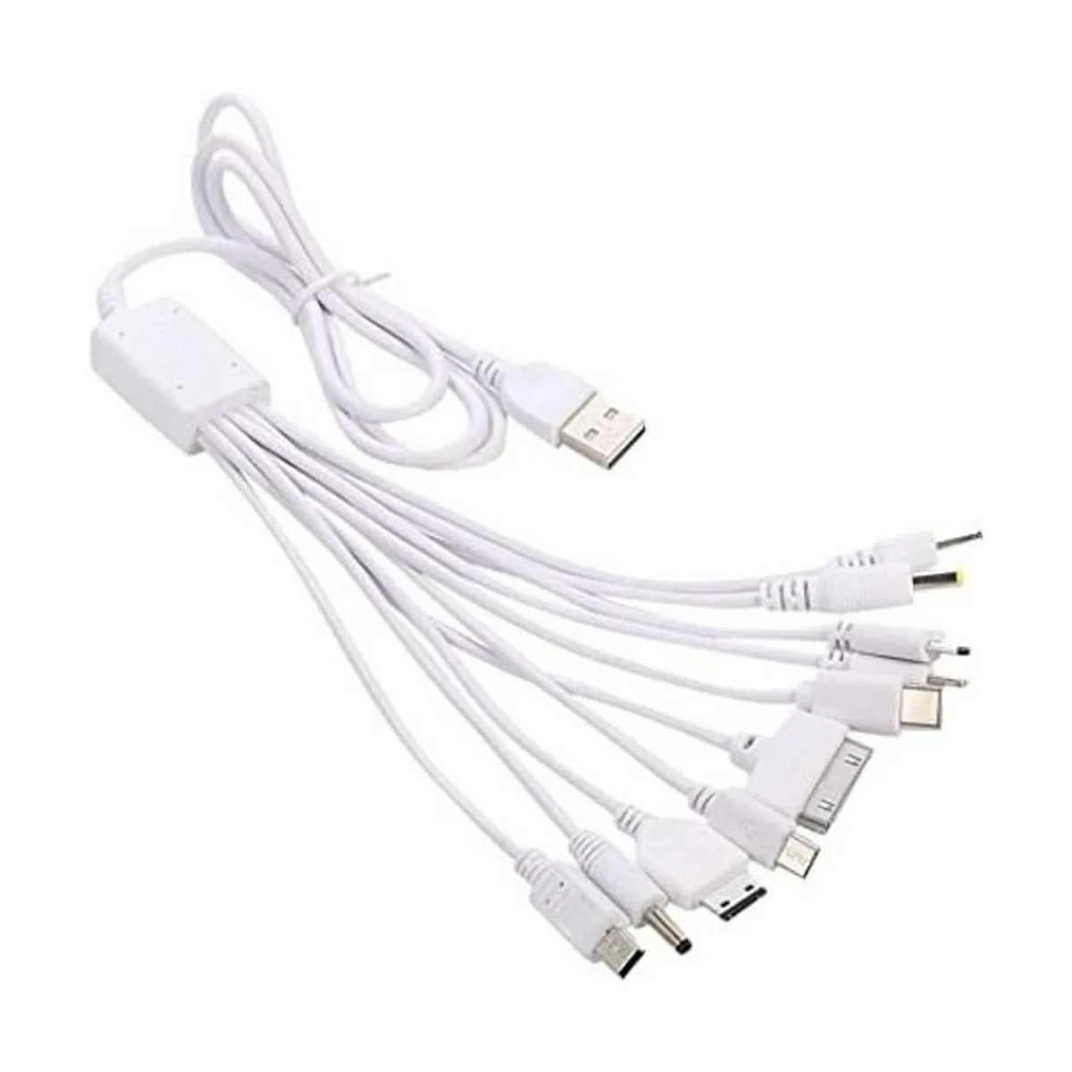 Sudroid Cable universal multifunción 10 en 1, compatible con cargador USB, teléfono celular, MP4, Zaf, color blanco