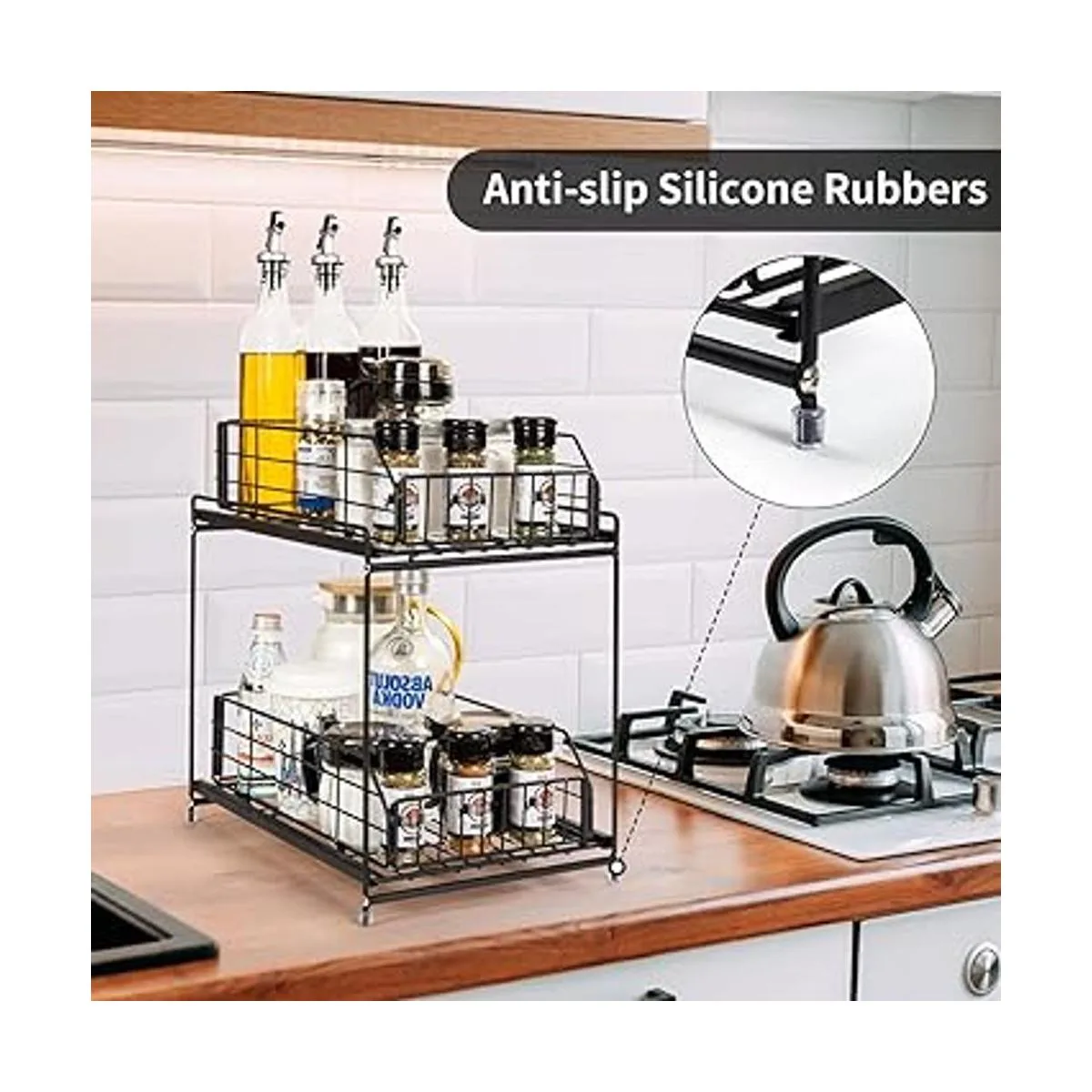 Almacenamiento versátil: el almacenamiento debajo del fregadero está cubierto con almohadillas de silicona en los pies para evitar que se resbale o cause arañazos en tus superficies, por lo que es un almacenamiento perfecto para ordenar el espacio en la cocina, baño, sala de estar y lavandería, etc.
