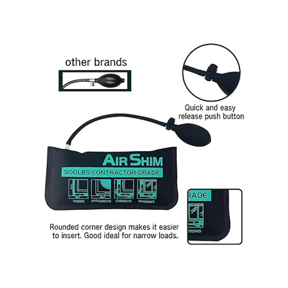 Fácil de transportar y operar: la bolsa de aire inflable viene con una bolsa de almacenamiento fácil de transportar y 2 herramientas auxiliares gratuitas. Nuestra bolsa de cuña de aire se adapta a huecos apretados de 2/32 pulgadas y se abre a 2 1/2 pulgadas de ancho con operación de bomba de una mano. Botón rápido y fácil para una nivelación precisa con una mano.