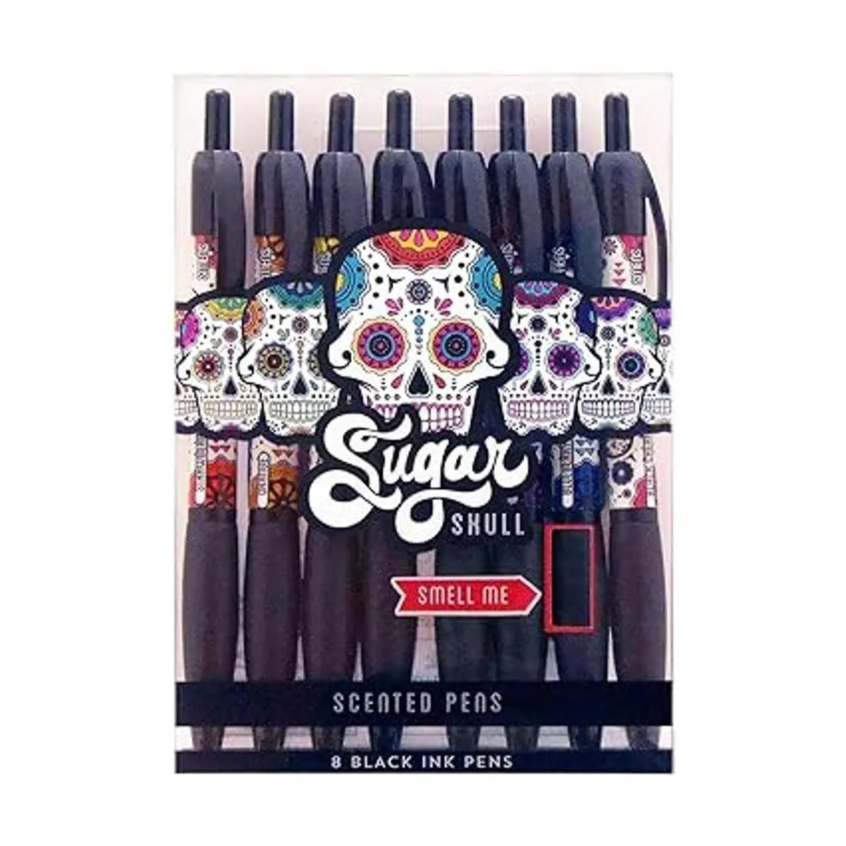 Sugar Skull Smens Bolígrafos perfumados, tinta negra, punta media, 8 unidades, marca Scentco