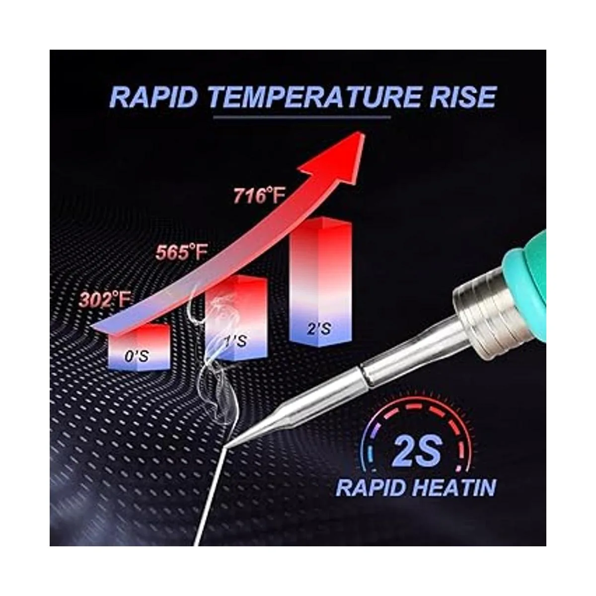 Calentamiento rápido La estación de soldadura universal de 110 V220 V tiene 120 W MAX de potencia, combinada con el cabezal de soldador C210 de una sola pieza, solo tarda 2 segundos en subir desde la temperatura de espera predeterminada hasta la temperatura de trabajo deseada como se muestra en el video.