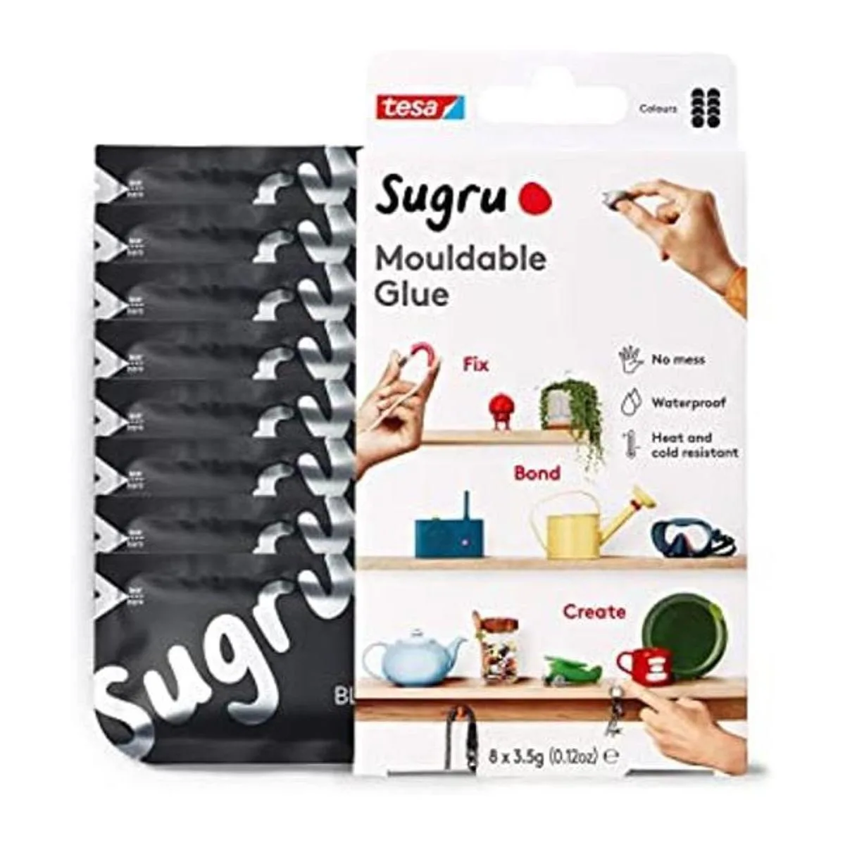Contiene 8 paquetes de 0.12 onzas de un solo uso de Sugru de tesa en negro